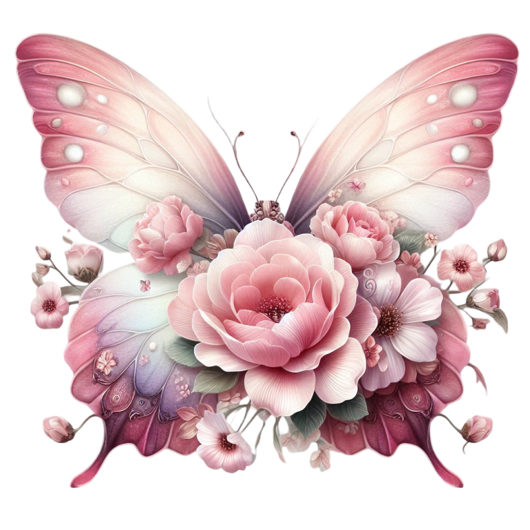 Pink Butterfly With Rose Flowers Vinyl Sticker Decal