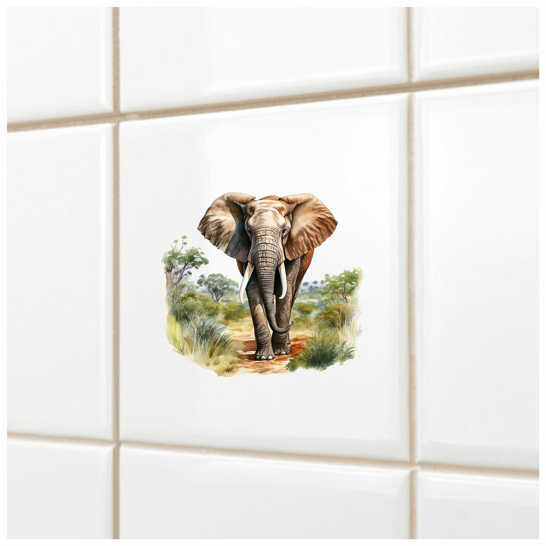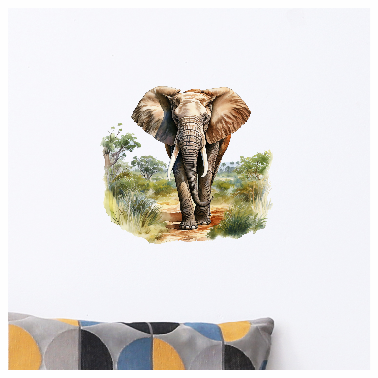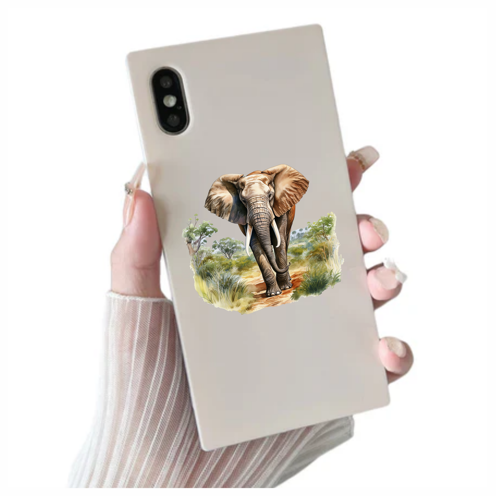 African Elephant Brown Grey Tusks Tall Wild Grassland Vinyl Decal Sticker
