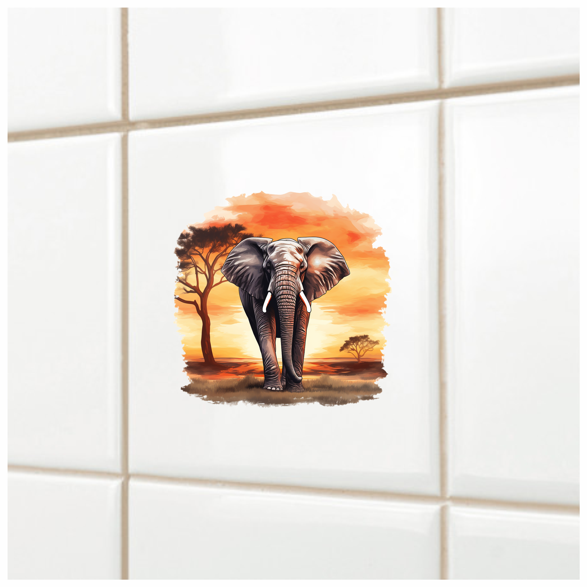 African Elephant Sunset Orange Landscape Vinyl Decal Sticker