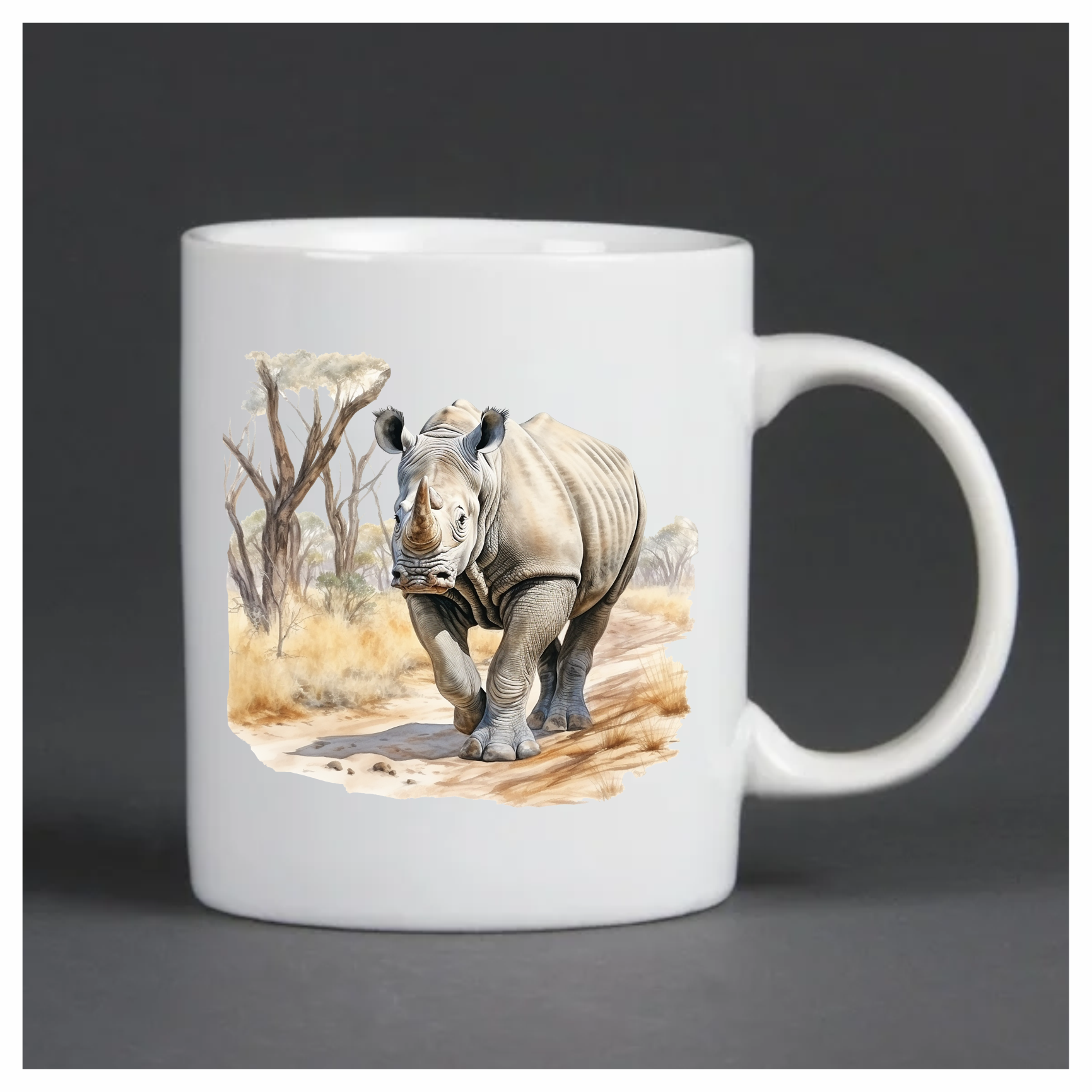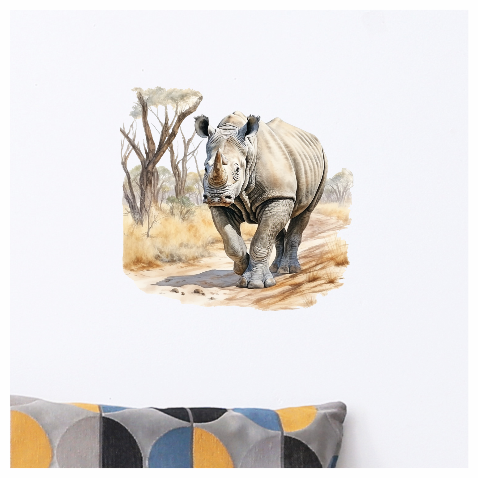 Grey Rhino Walking African Savannah Vinyl Sticker Decal