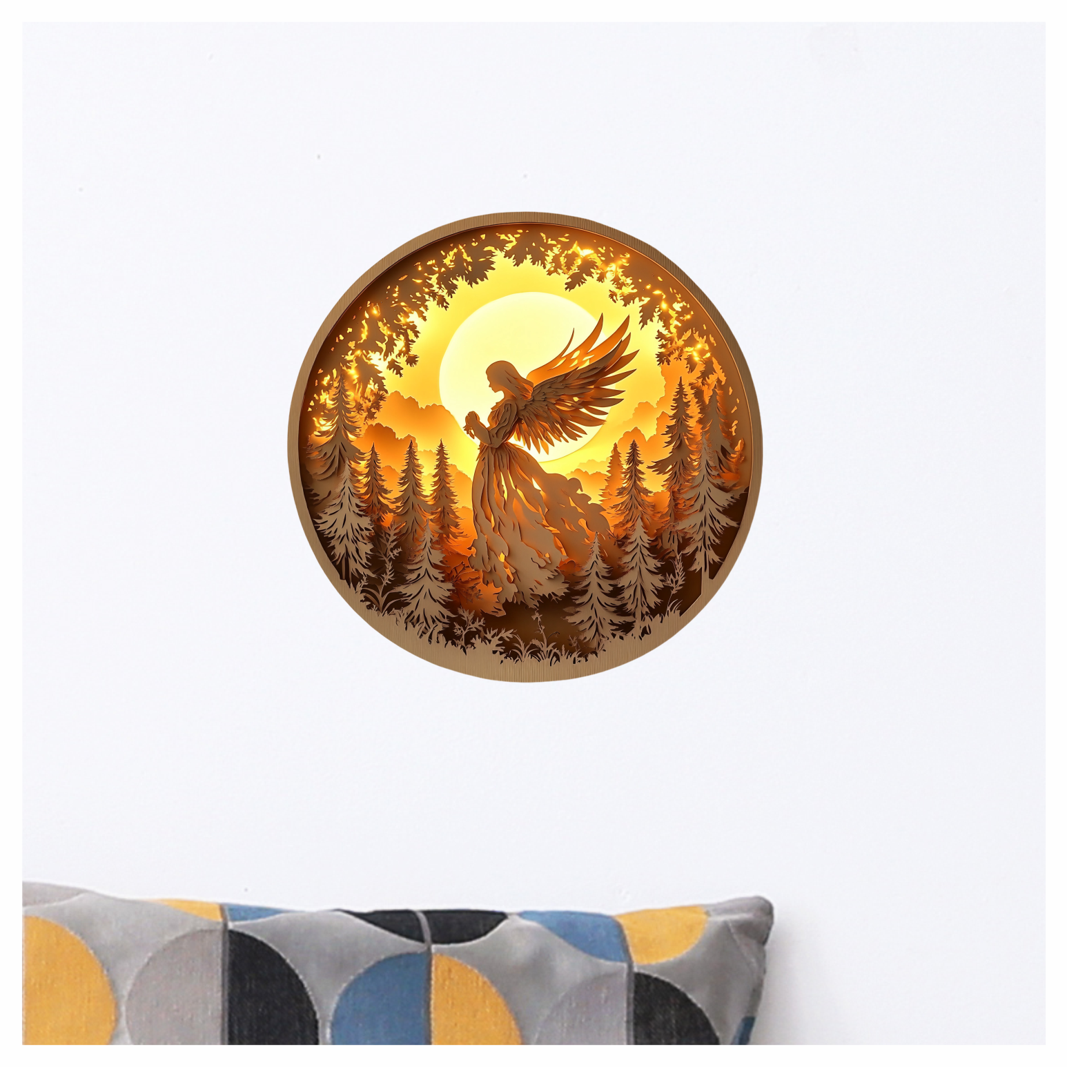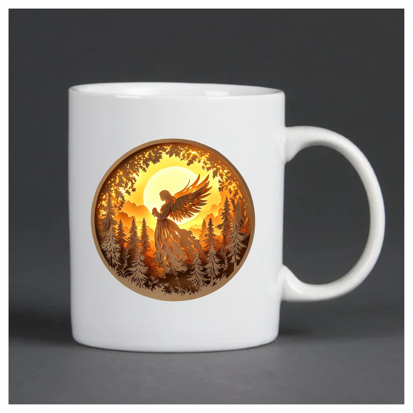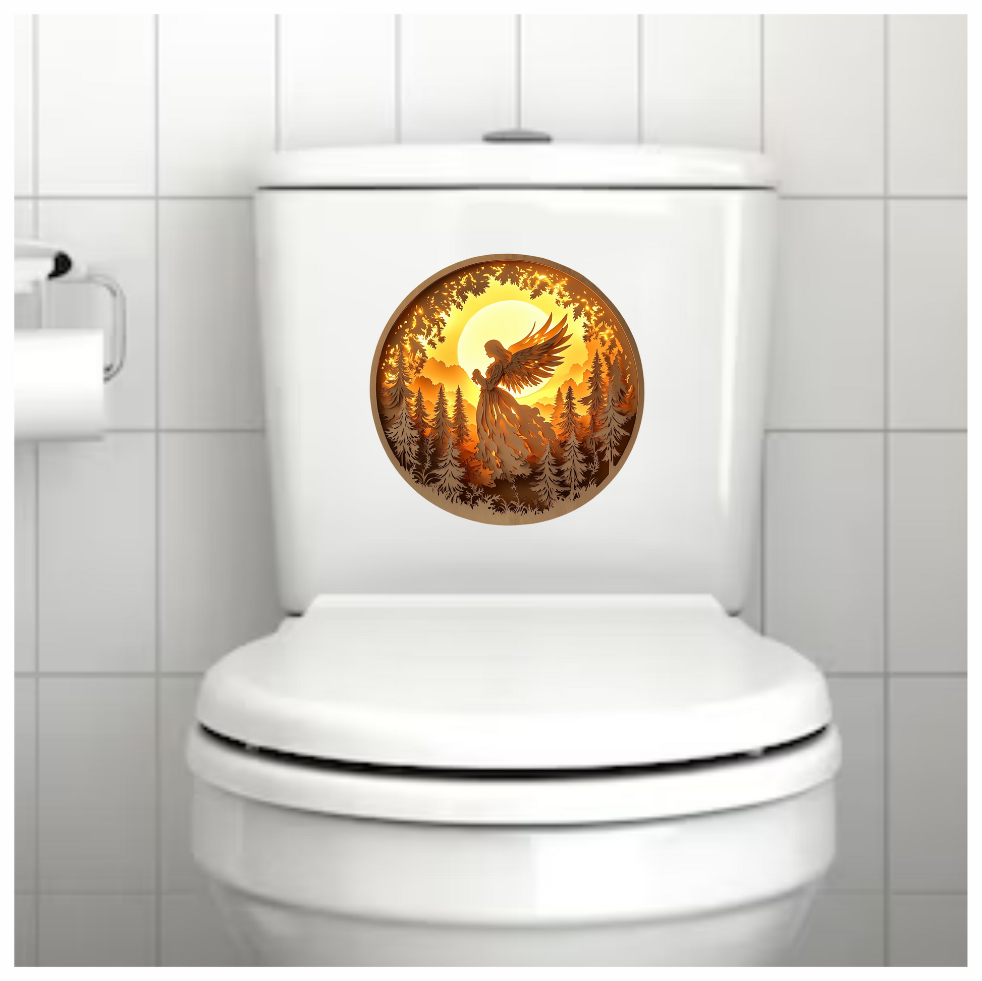 Golden Angel Silhouette Forest Sunset Vinyl Sticker Decal
