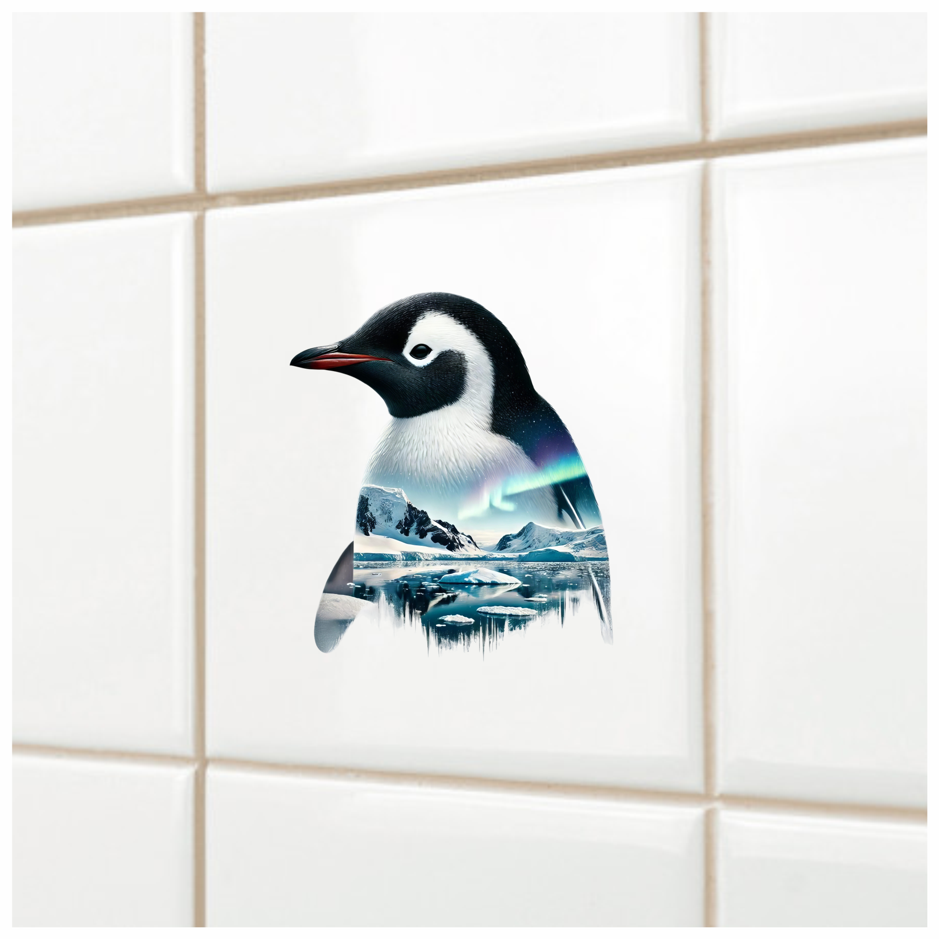 Black White Penguin Arctic Landscape Aurora Vinyl Sticker Decal