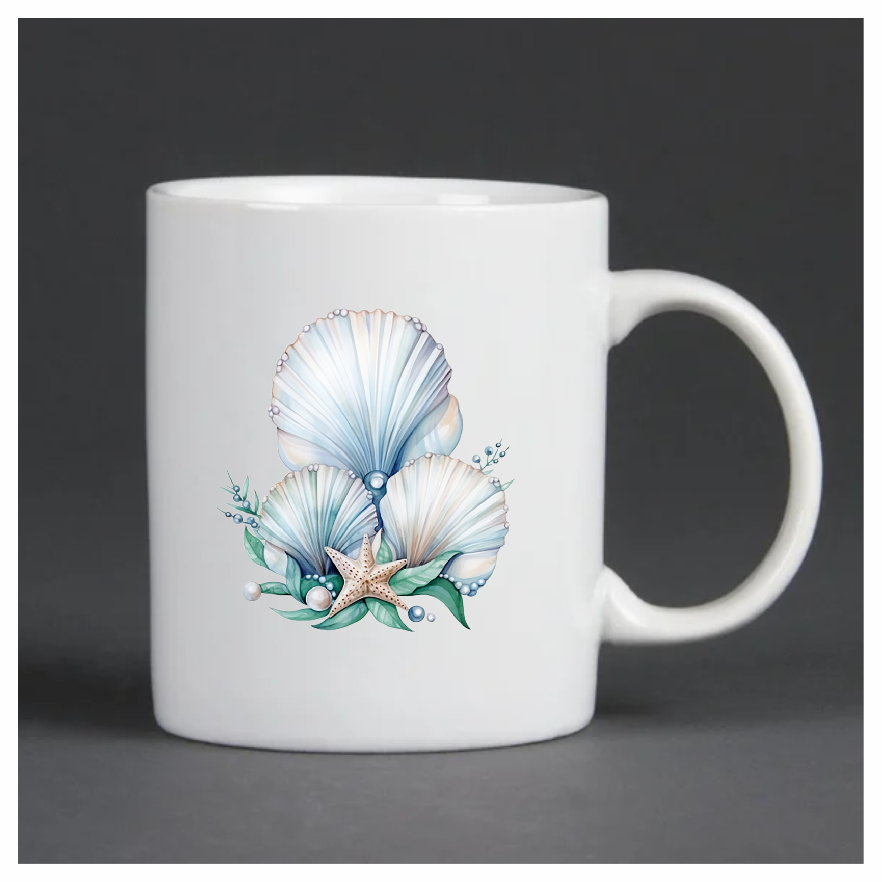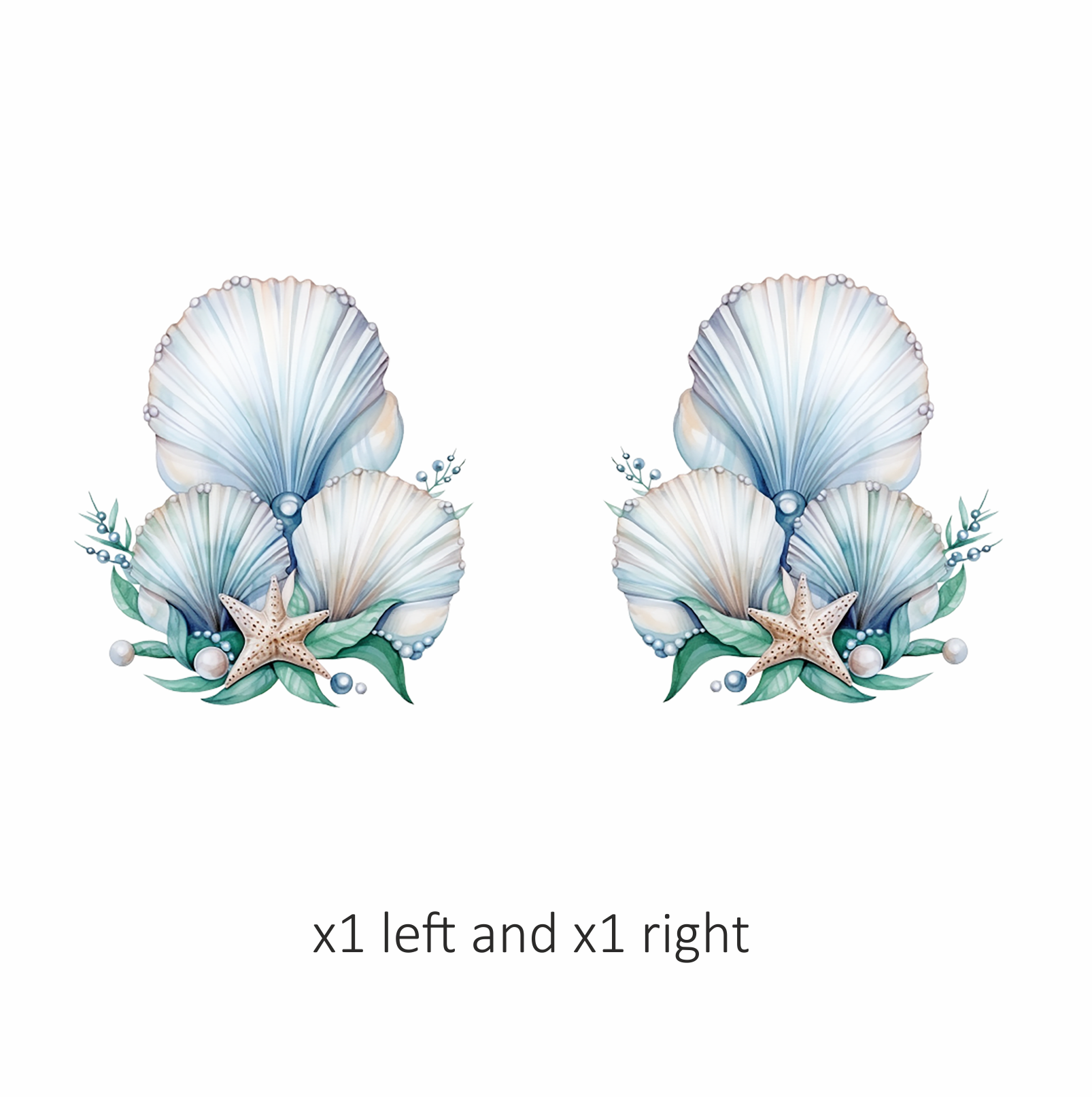 Blue Seashells With Starfish And Pearls Vinyl Sticker Decal
