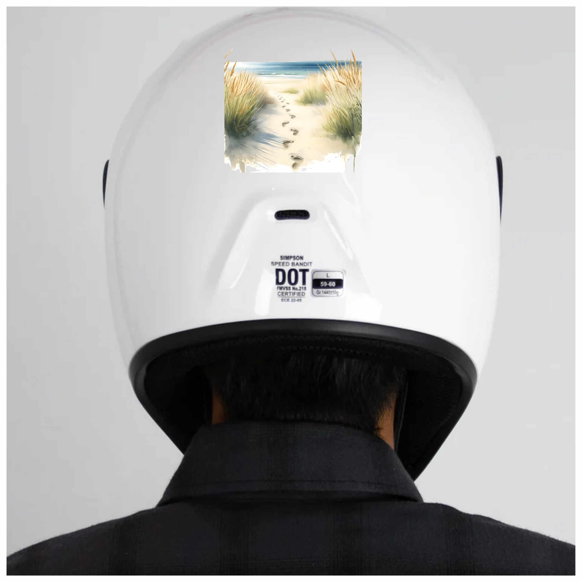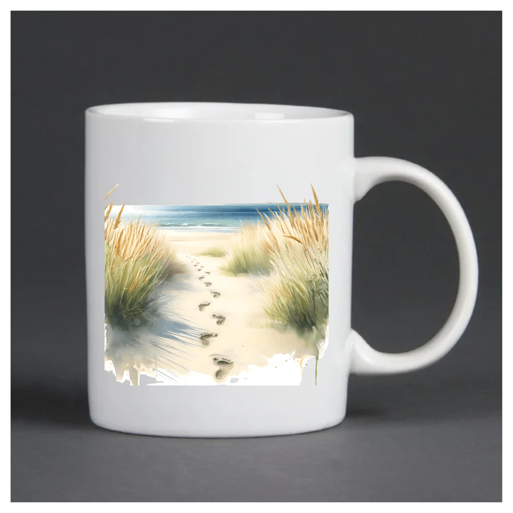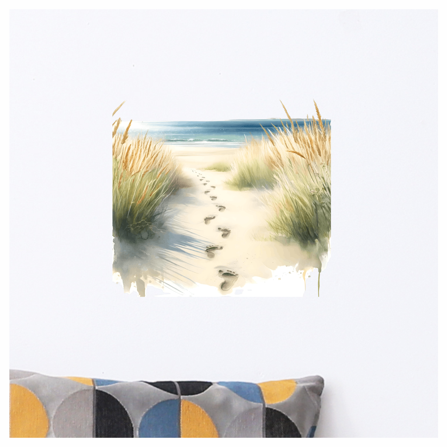 Beige Sand Footprints Leading To Ocean Vinyl Sticker Decal