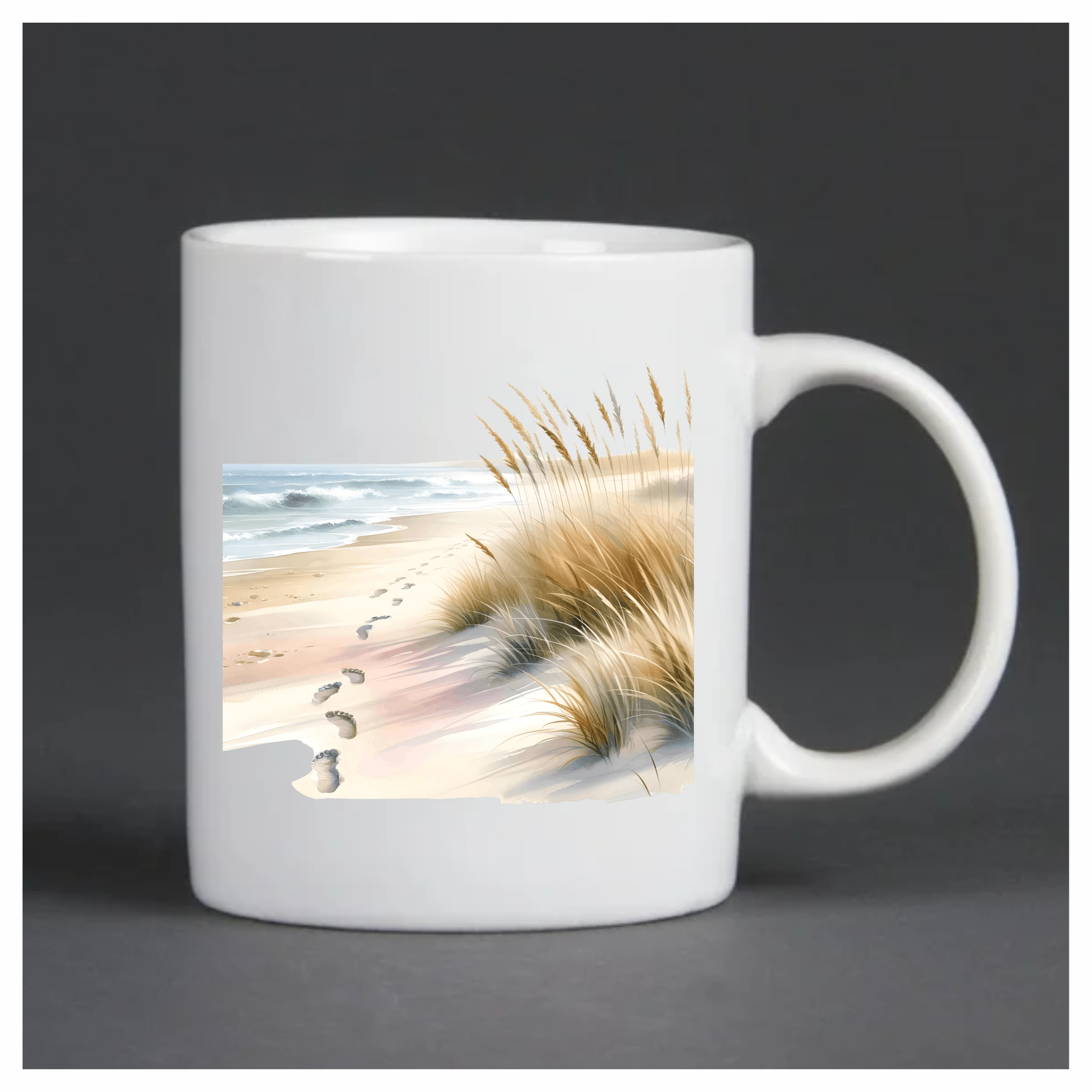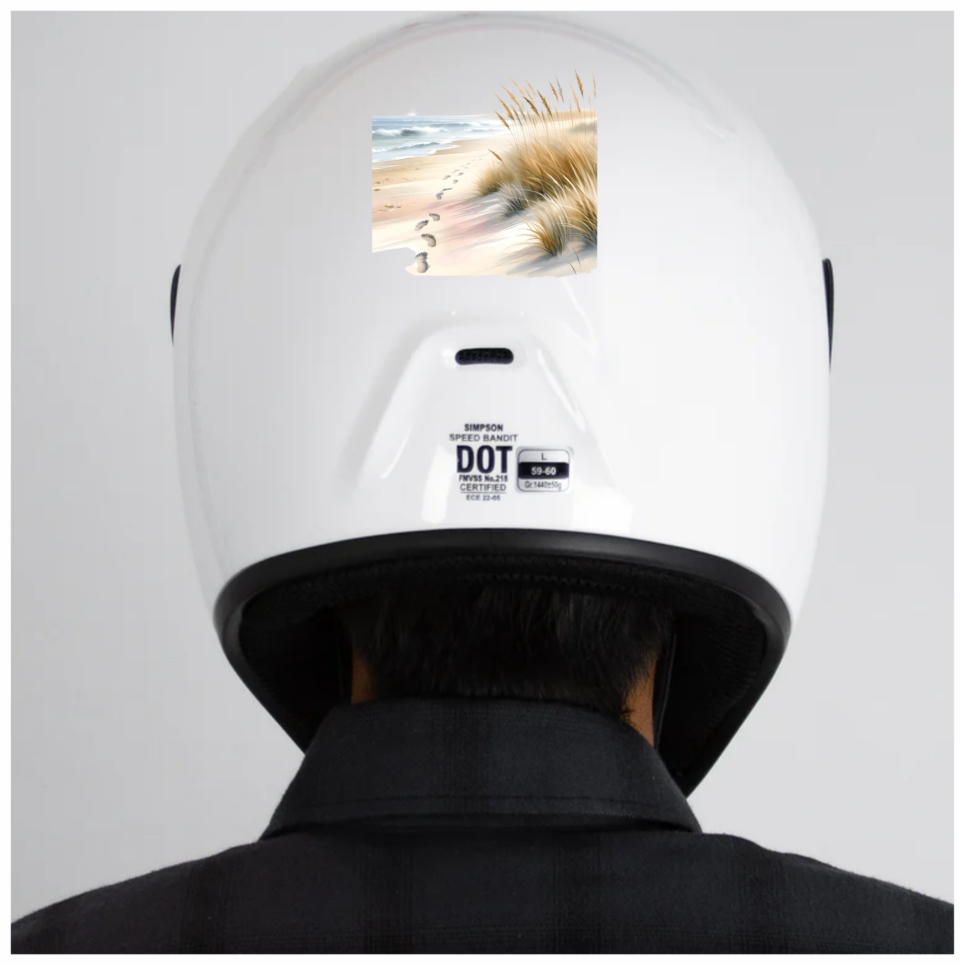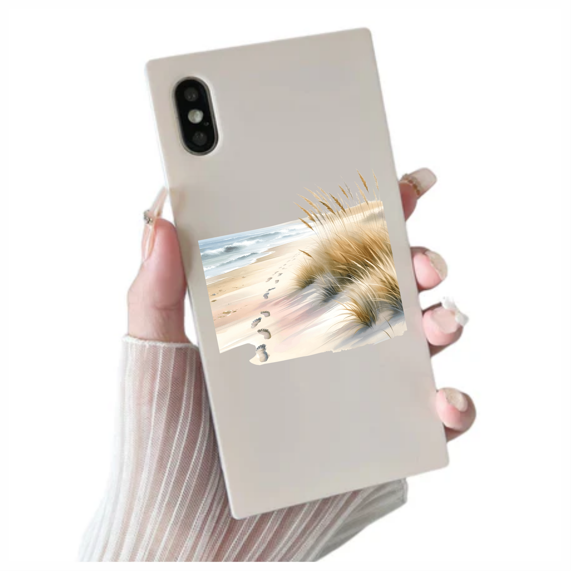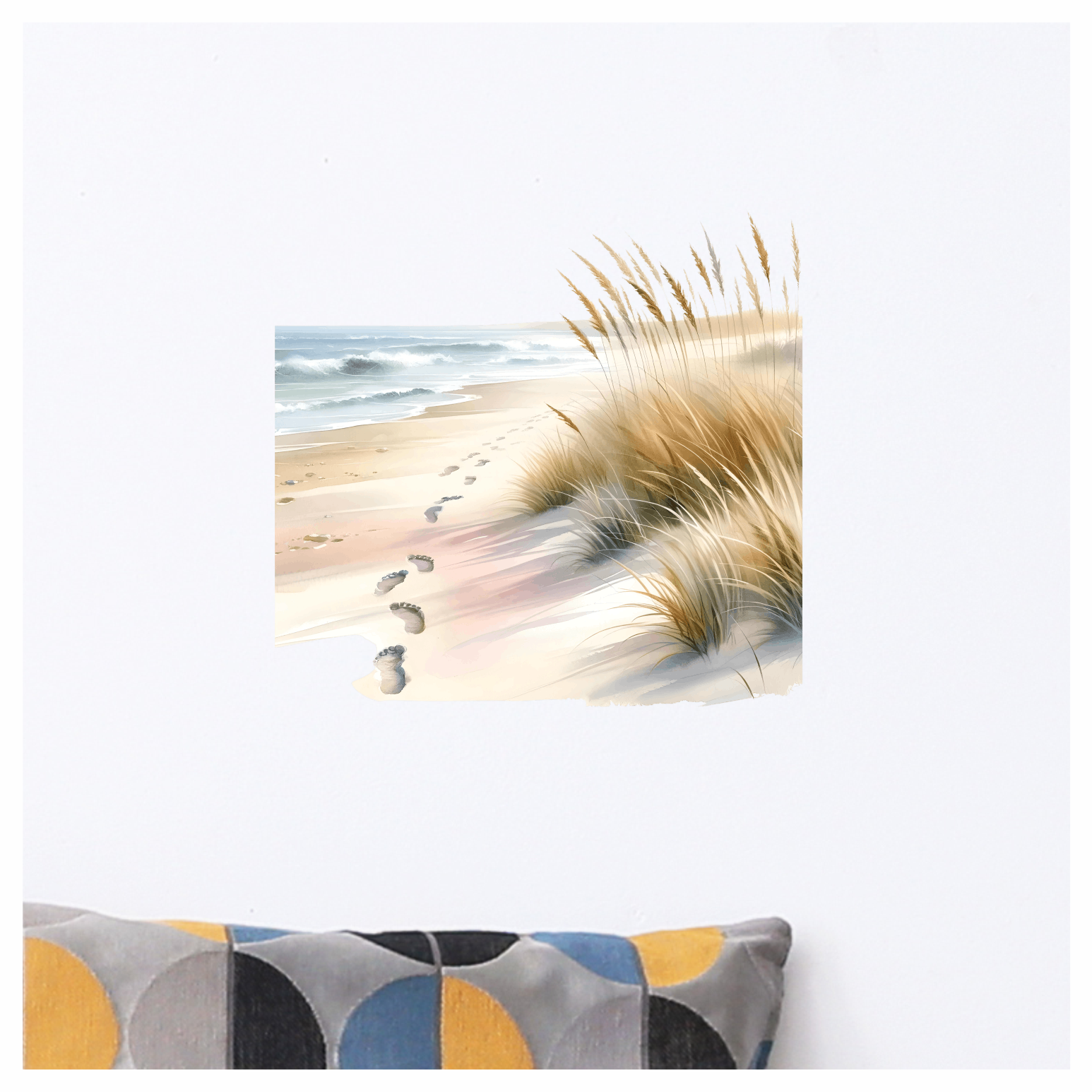 Beige Sand Footprints Along Ocean Waves Vinyl Sticker Decal