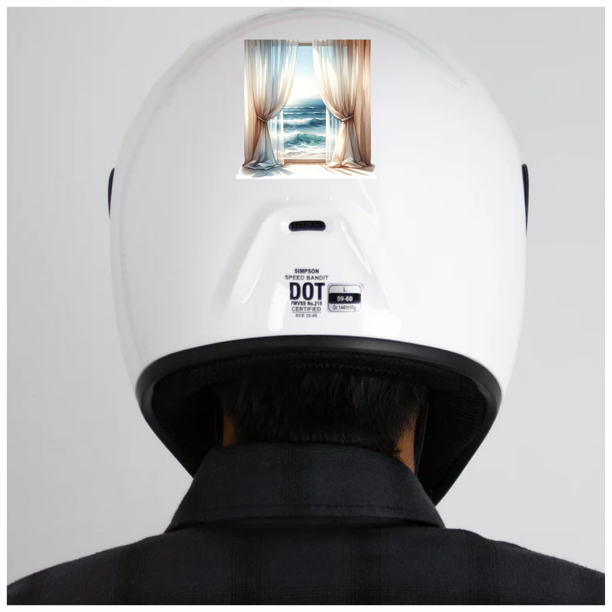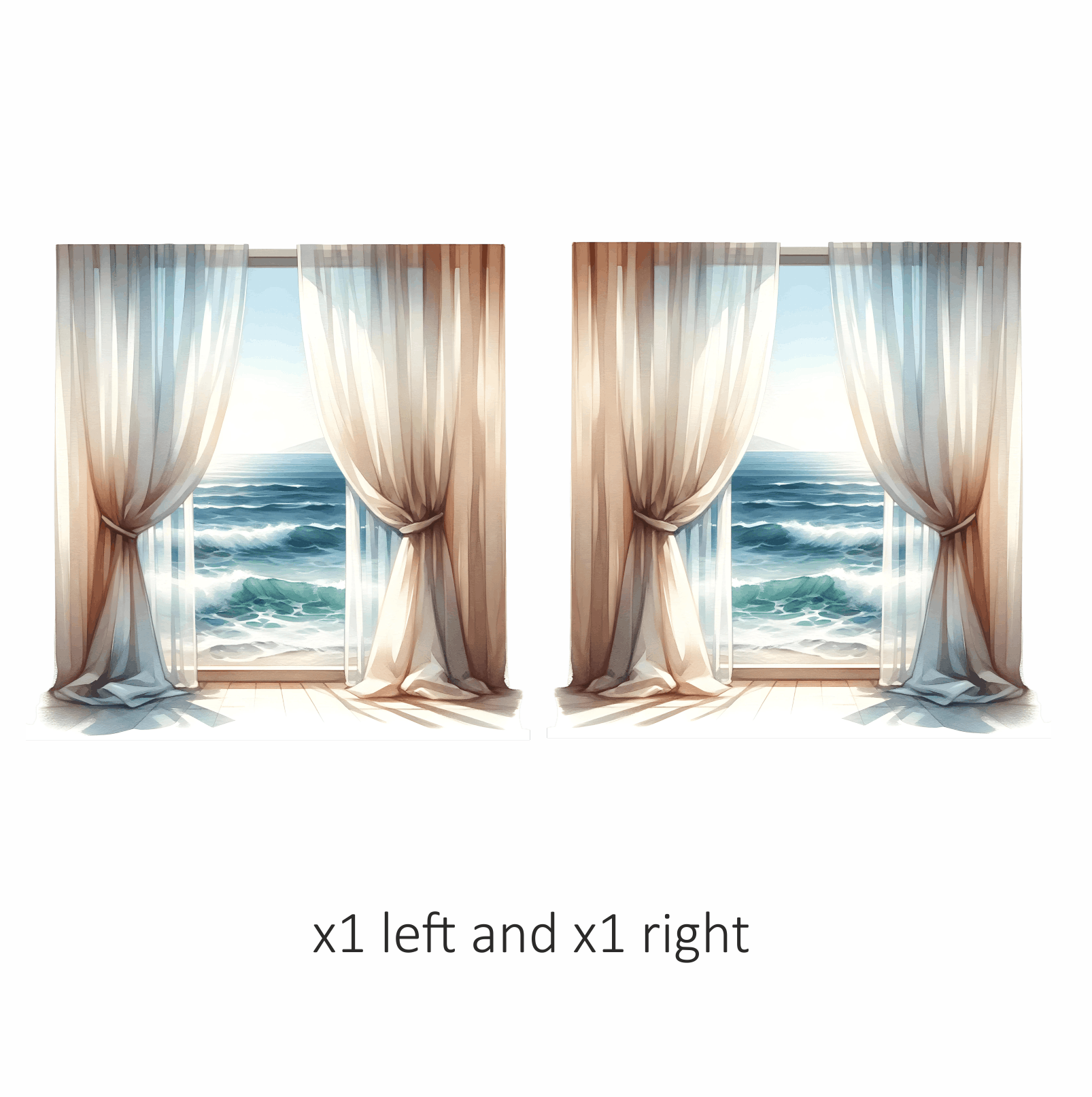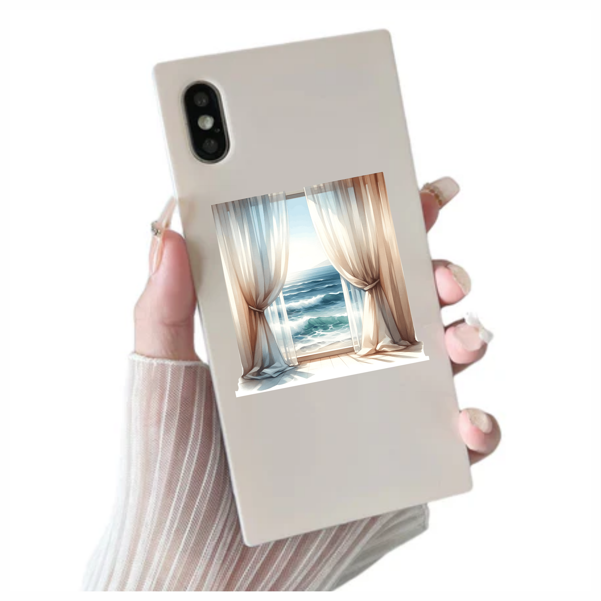 Beige Curtains Open To Blue Ocean Vinyl Sticker Decal