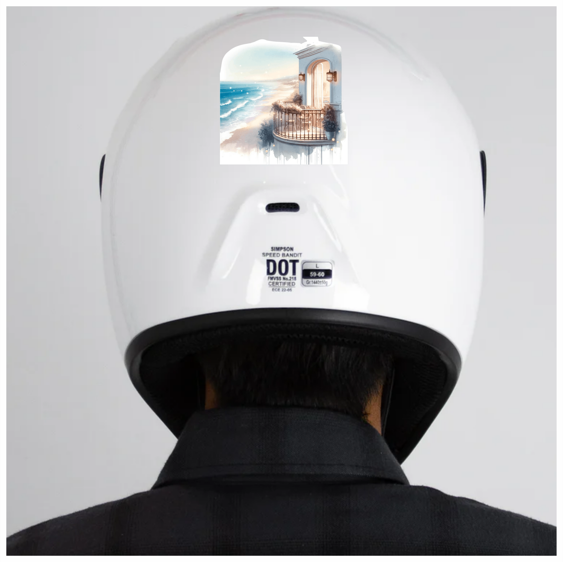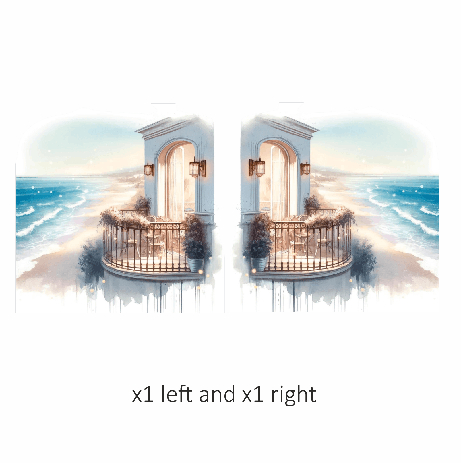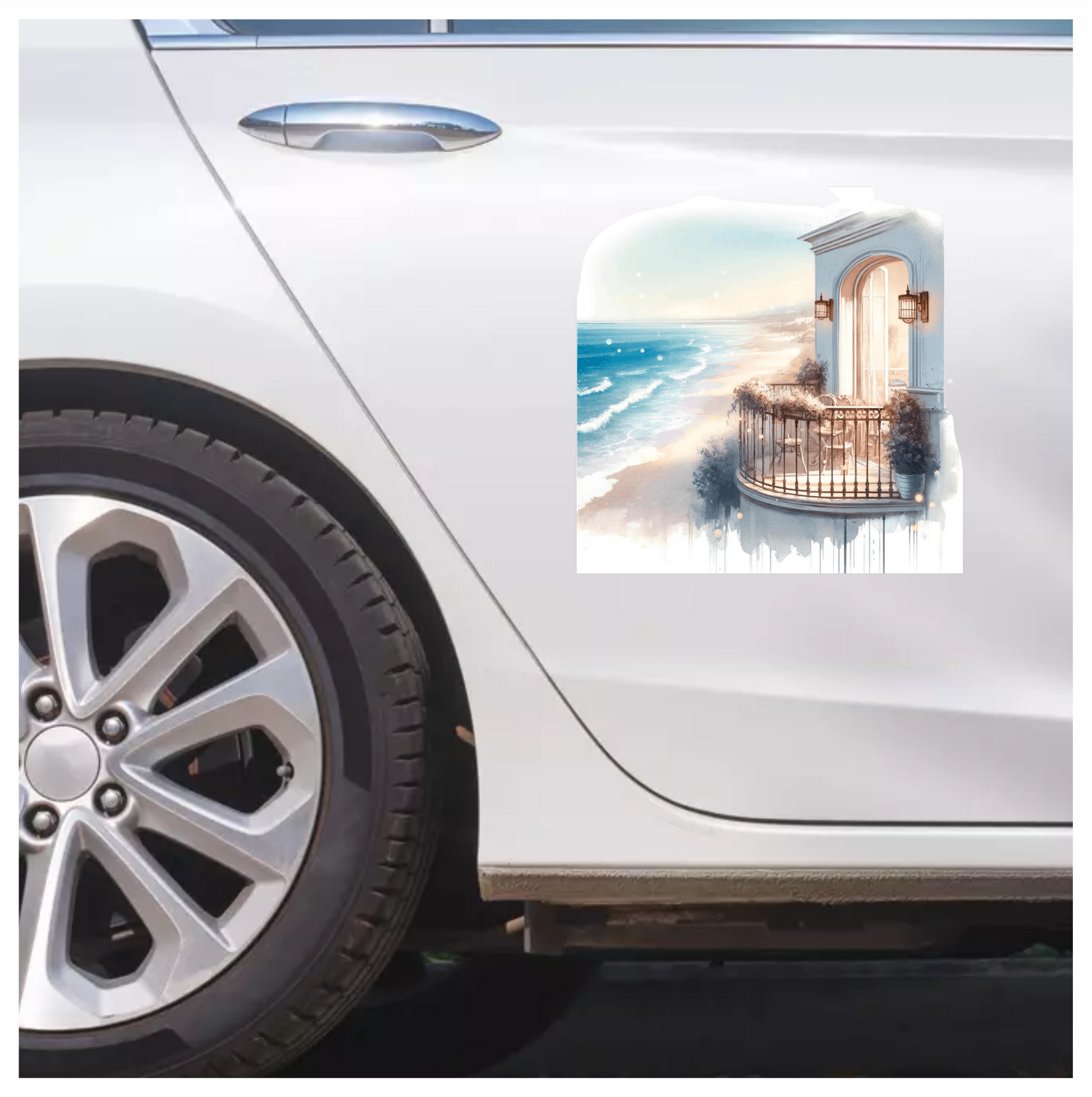 Beige Balcony Overlooking Blue Ocean Waves Vinyl Sticker Decal