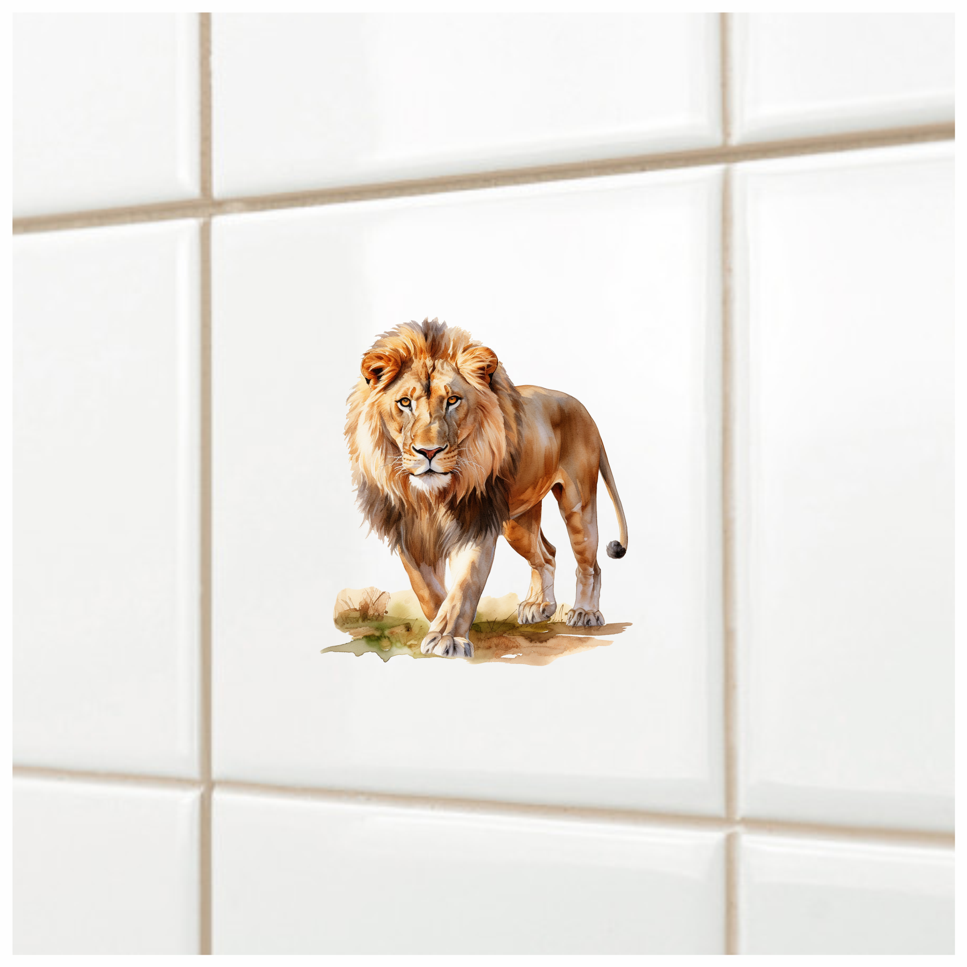 Golden Lion Walking On Green Grass Vinyl Sticker Decal