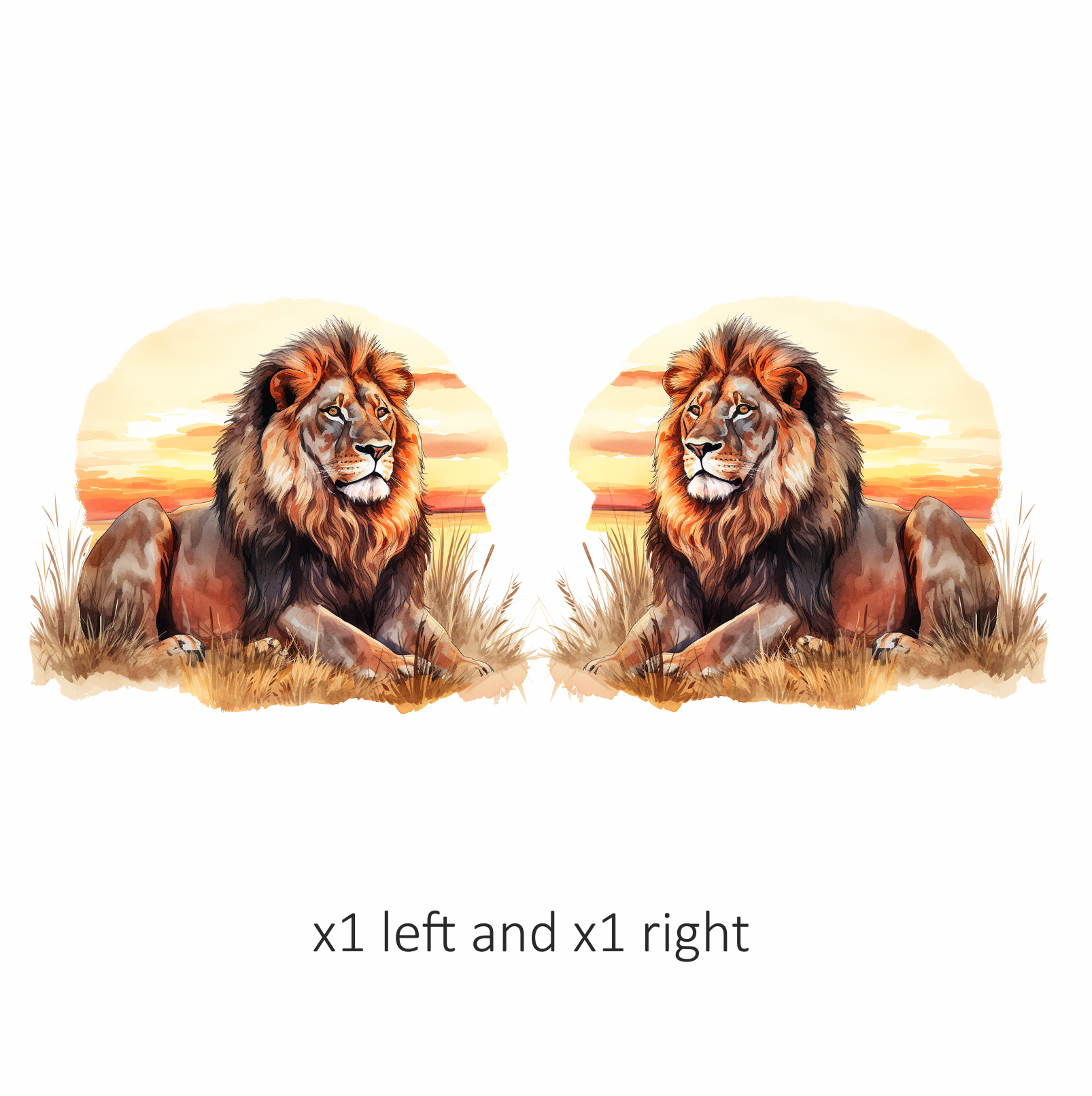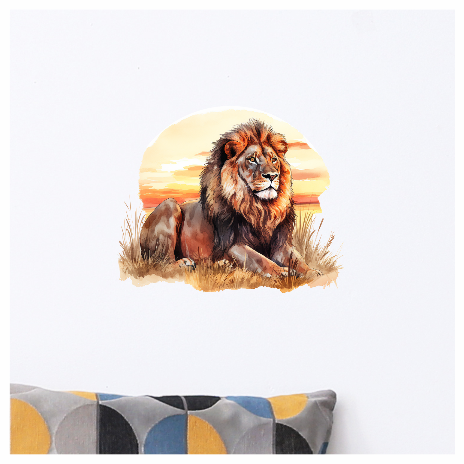 Brown Lion Resting On Grass Sunset Vinyl Sticker Decal