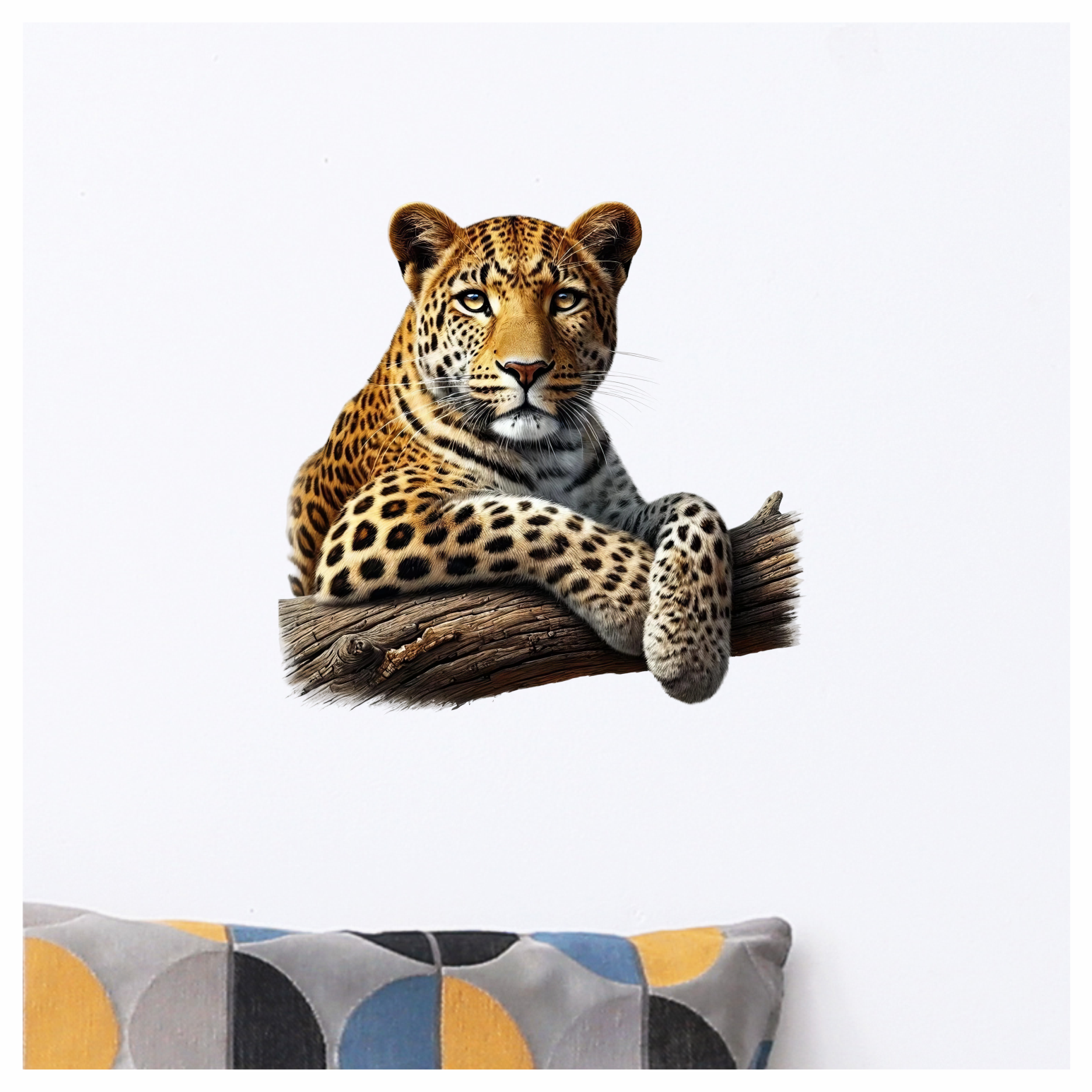 Golden Leopard Resting On Wooden Log Vinyl Sticker Decal