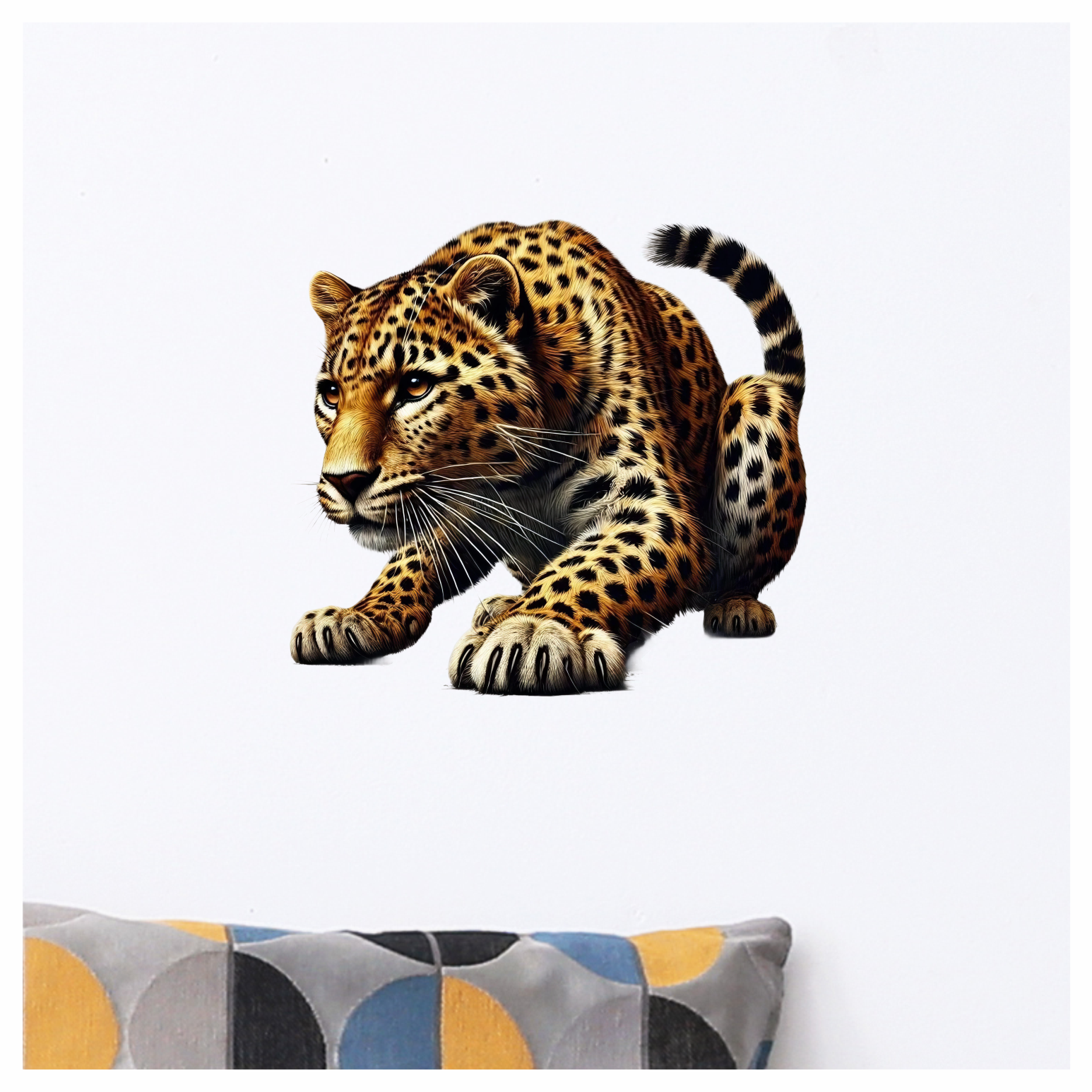 Golden Leopard Crouching Low Ready Stance Vinyl Sticker Decal