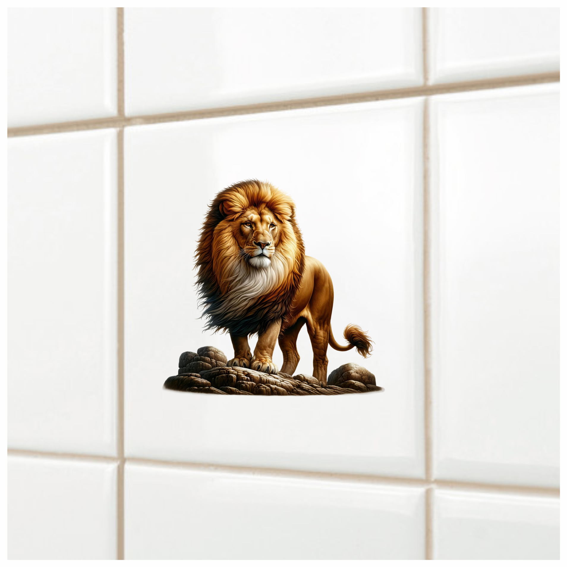 Golden Lion Standing Strong On Rocks Vinyl Sticker Decal