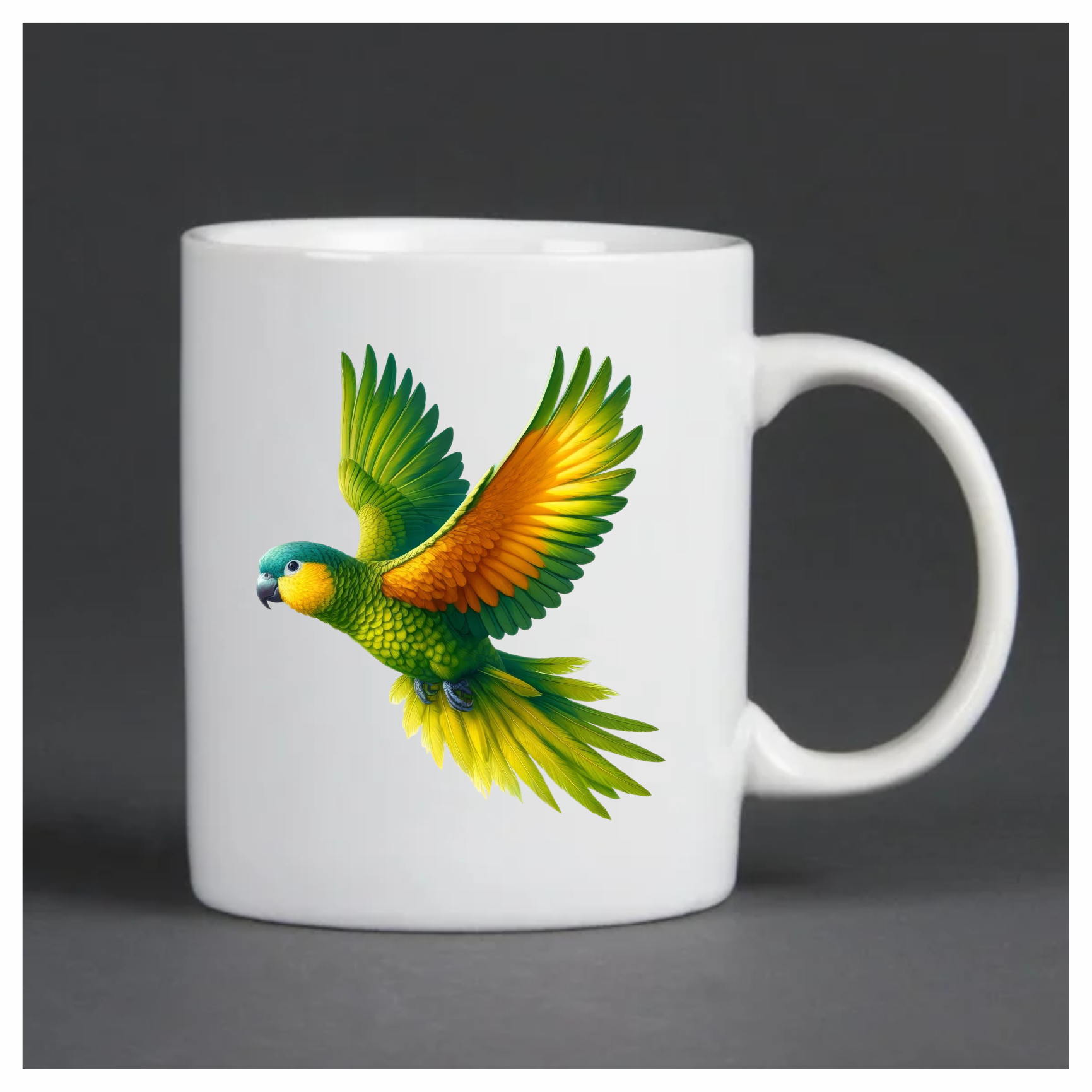 Green Parrot With Orange Wings Flying Vinyl Sticker Decal