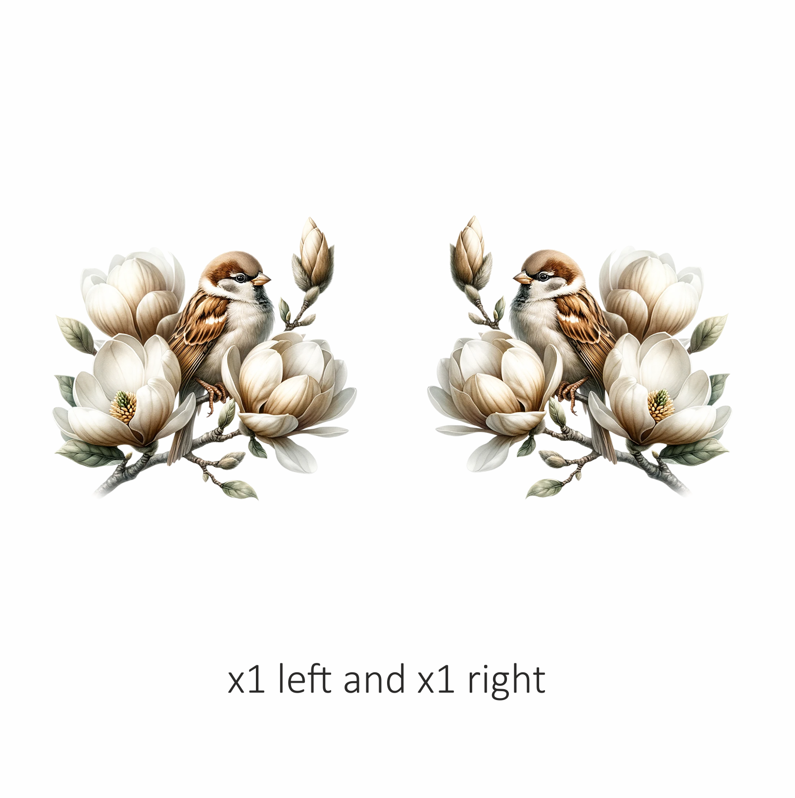 Brown Sparrow Bird With White Flowers Vinyl Sticker Decal