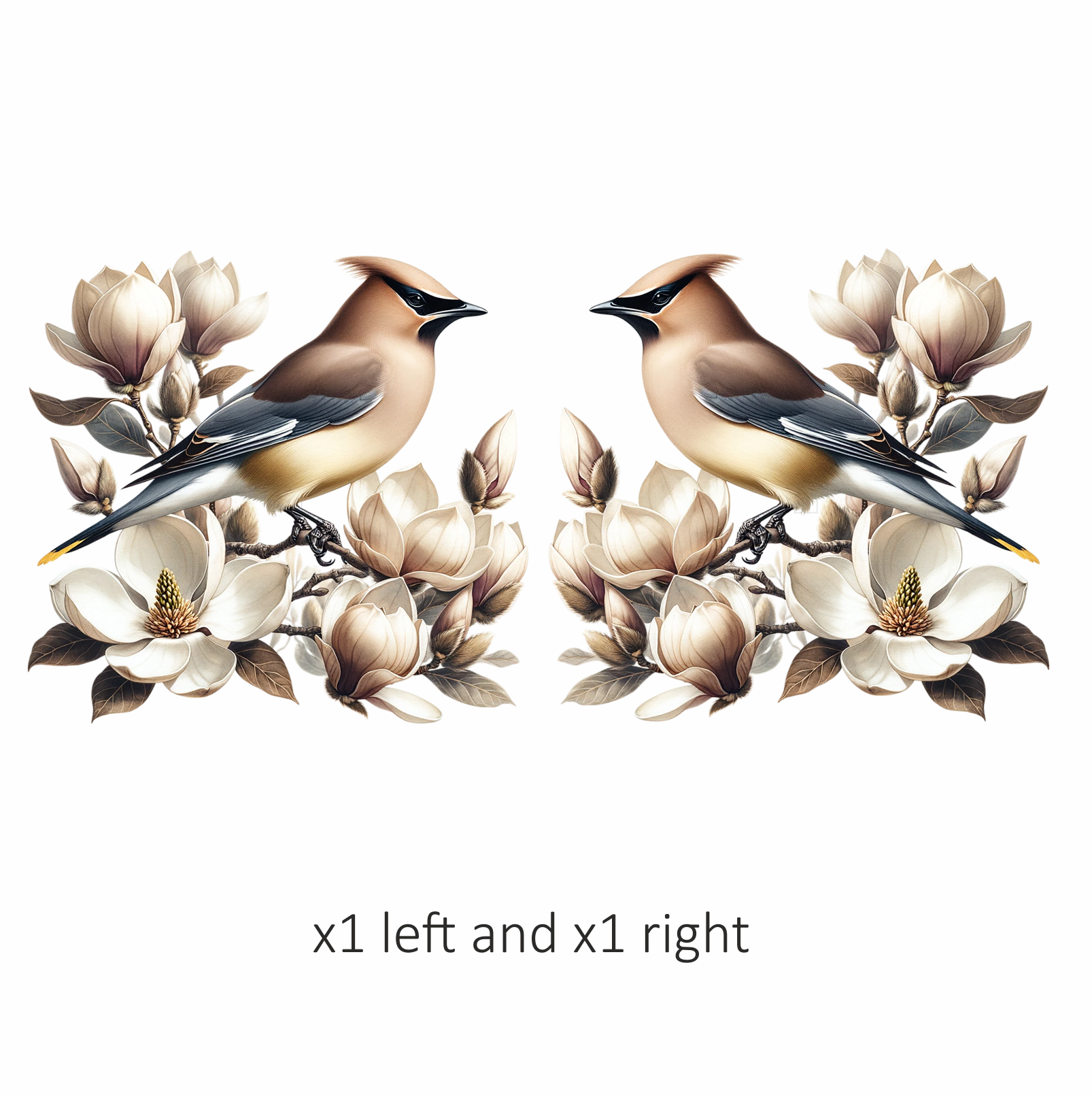 Brown Bird Magnolia Flowers Branch Vinyl Sticker Decal