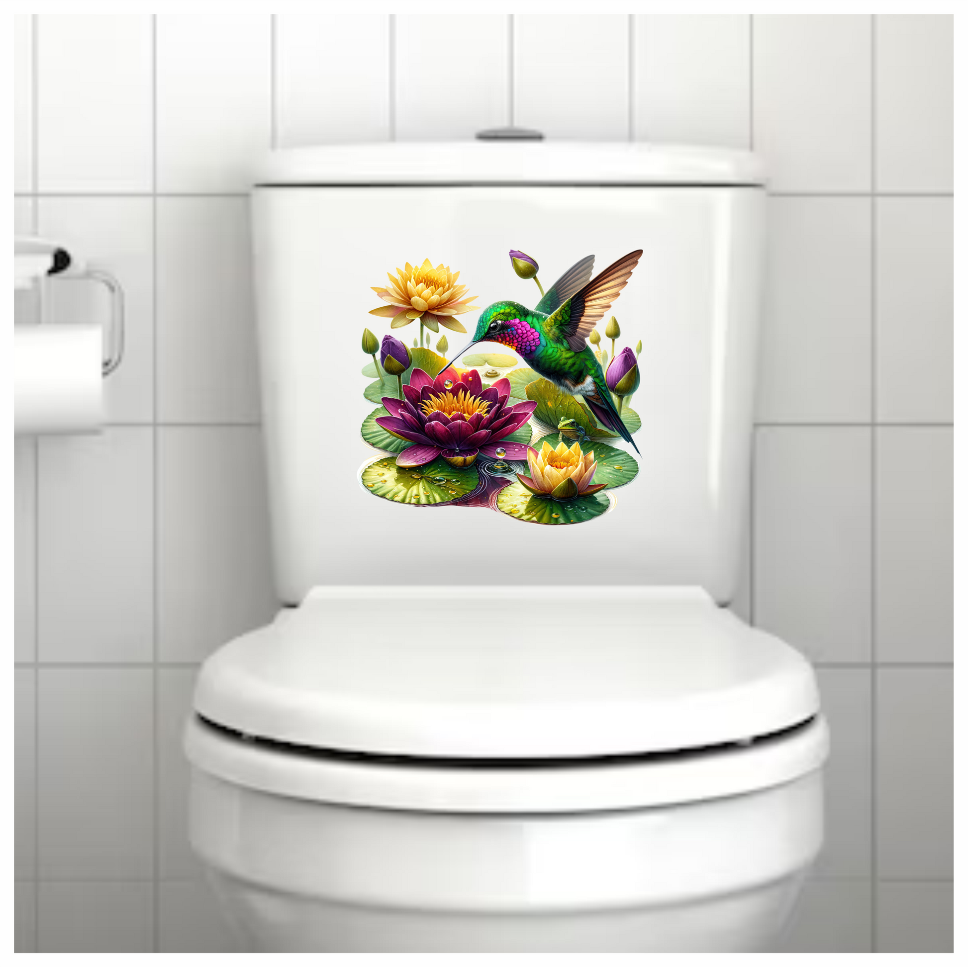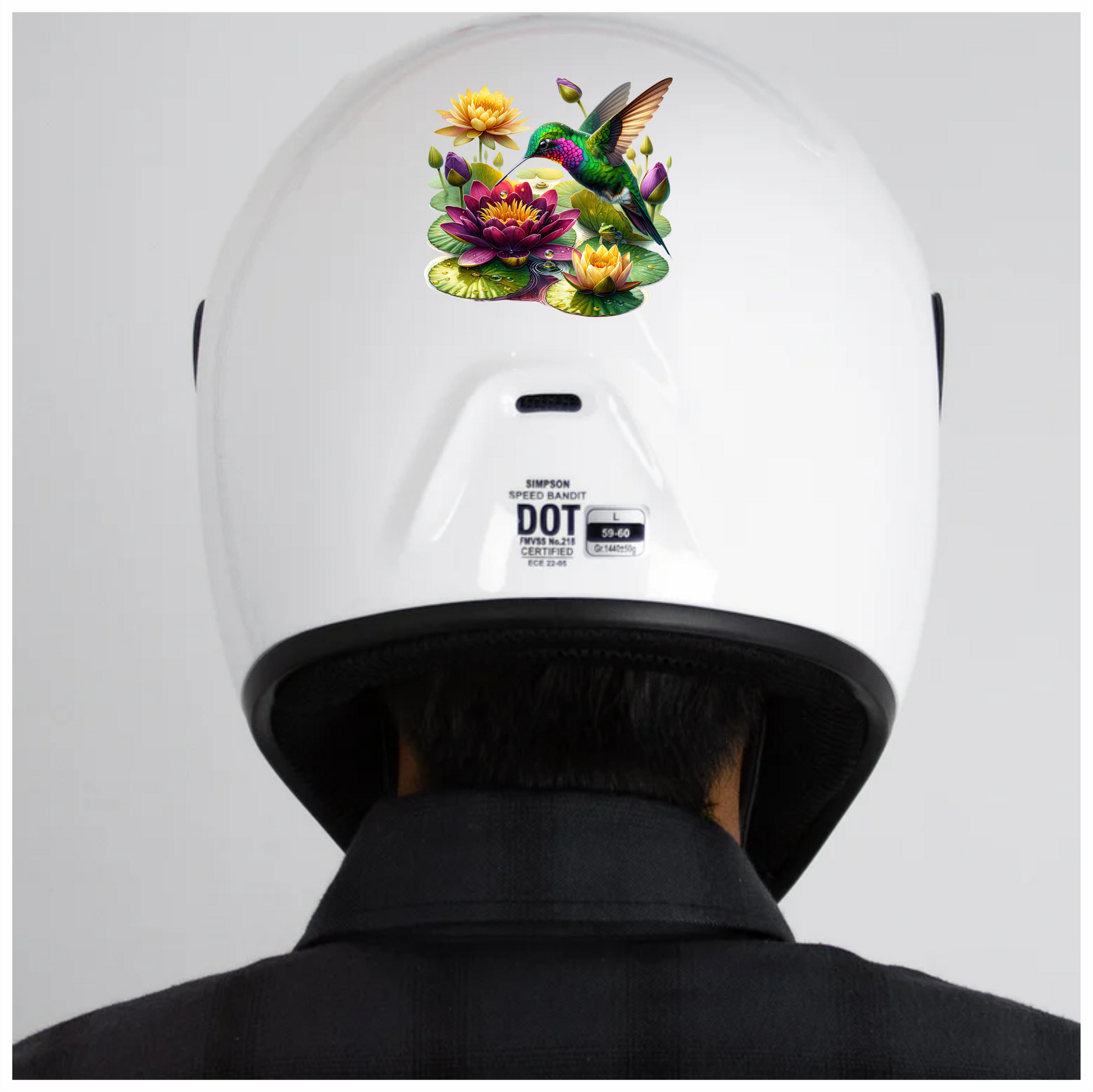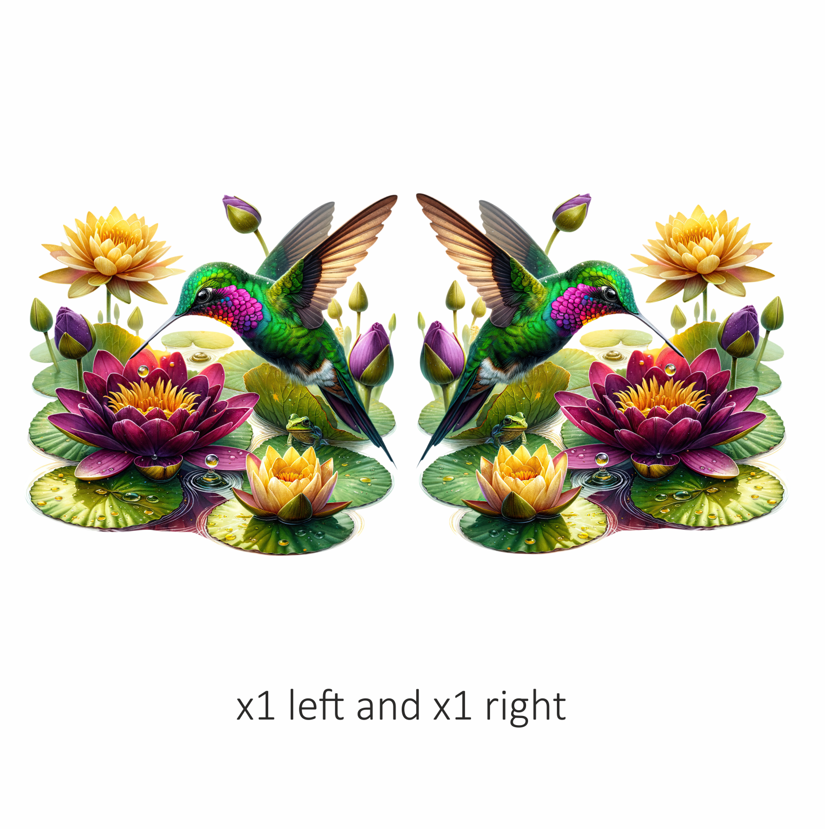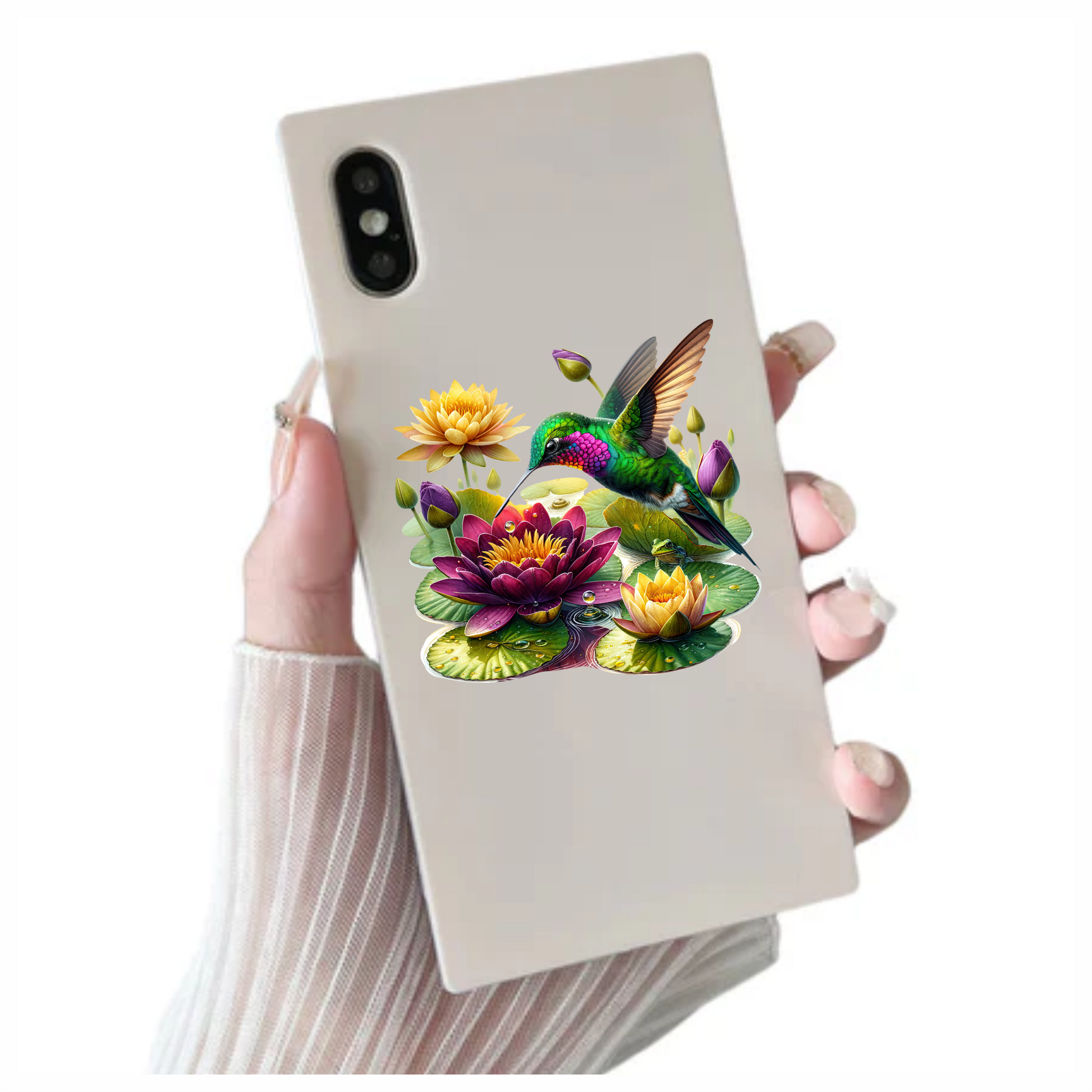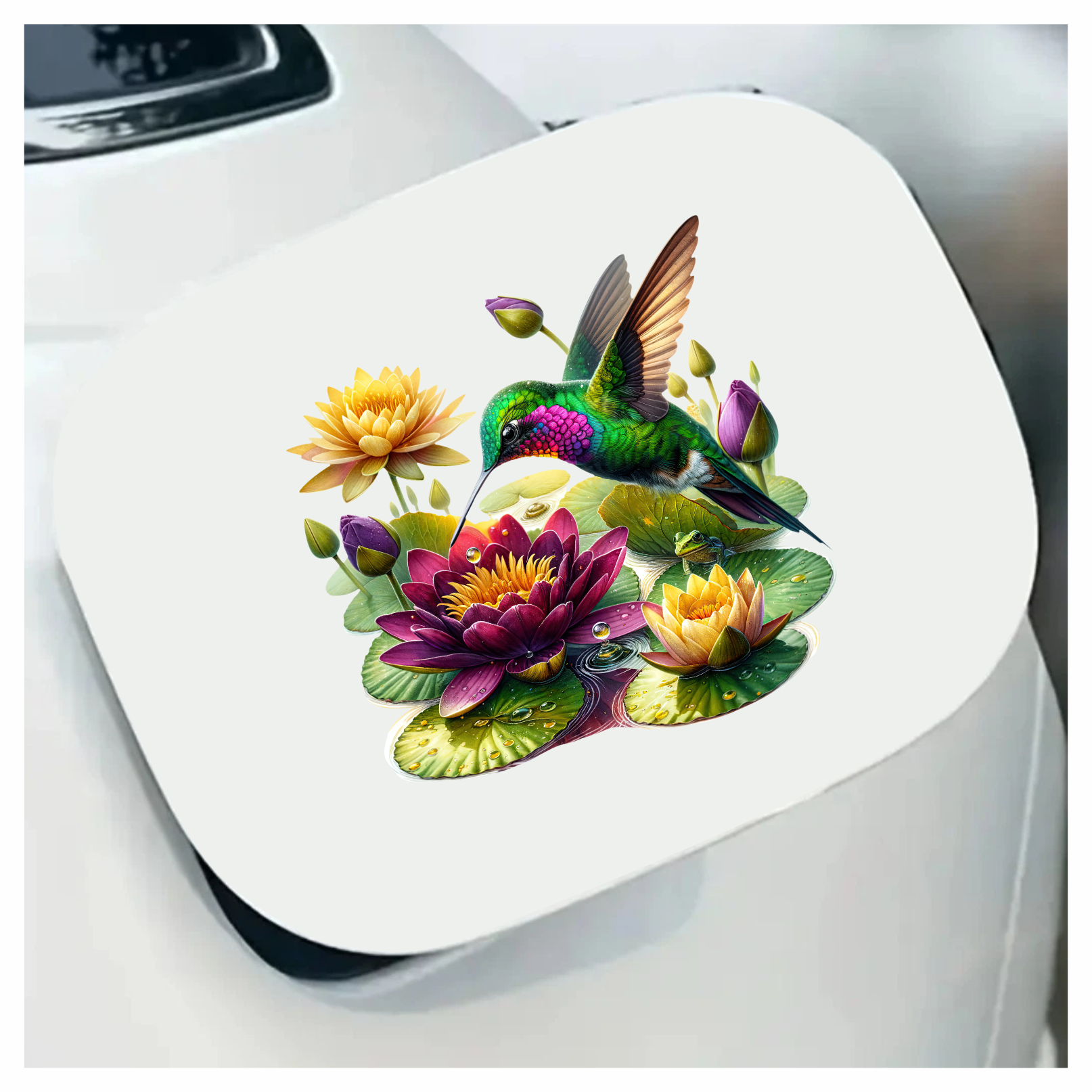 Green Hummingbird Bird Hovering Over Lilies Vinyl Sticker Decal