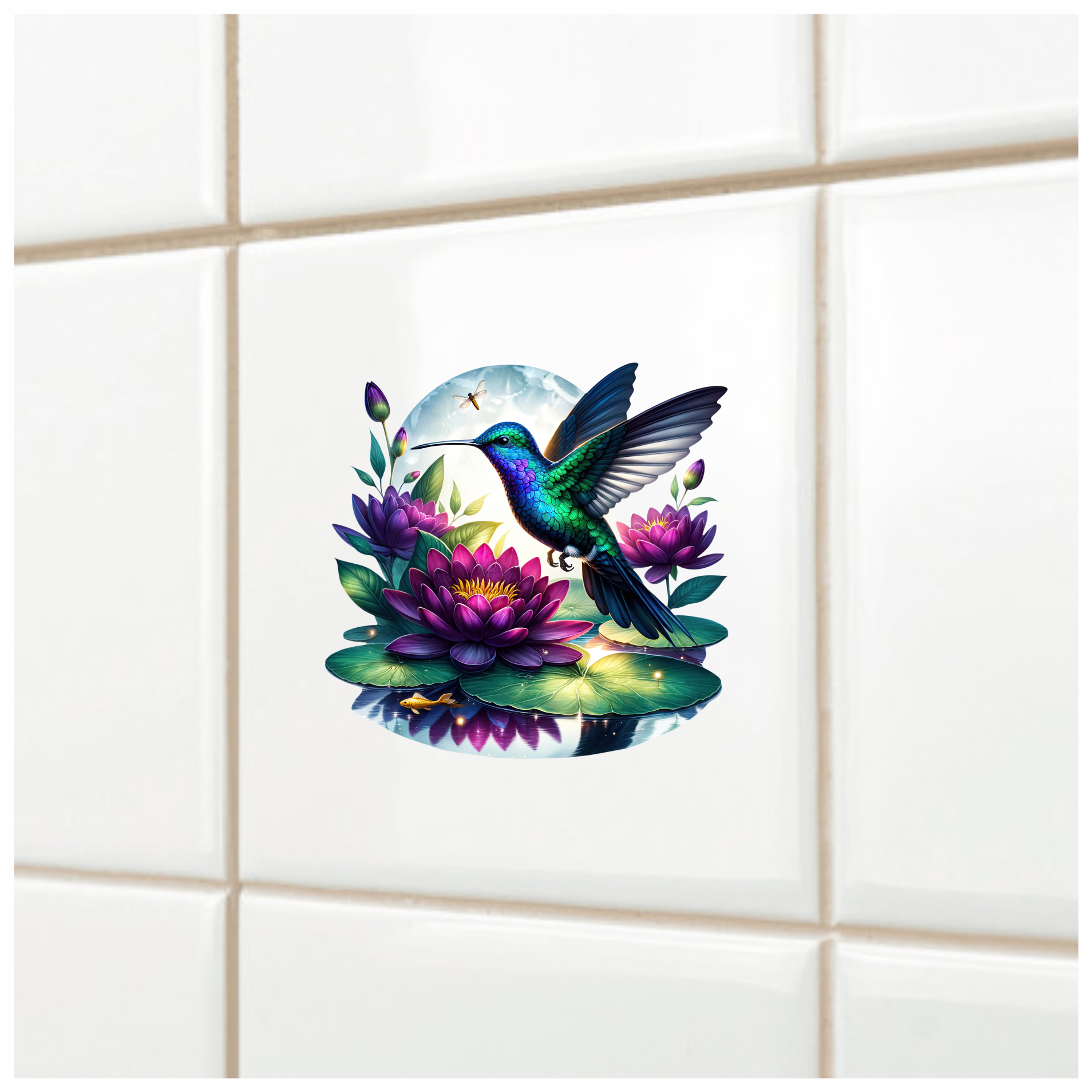 Blue Hummingbird Bird Flying Over Lilies Vinyl Sticker Decal