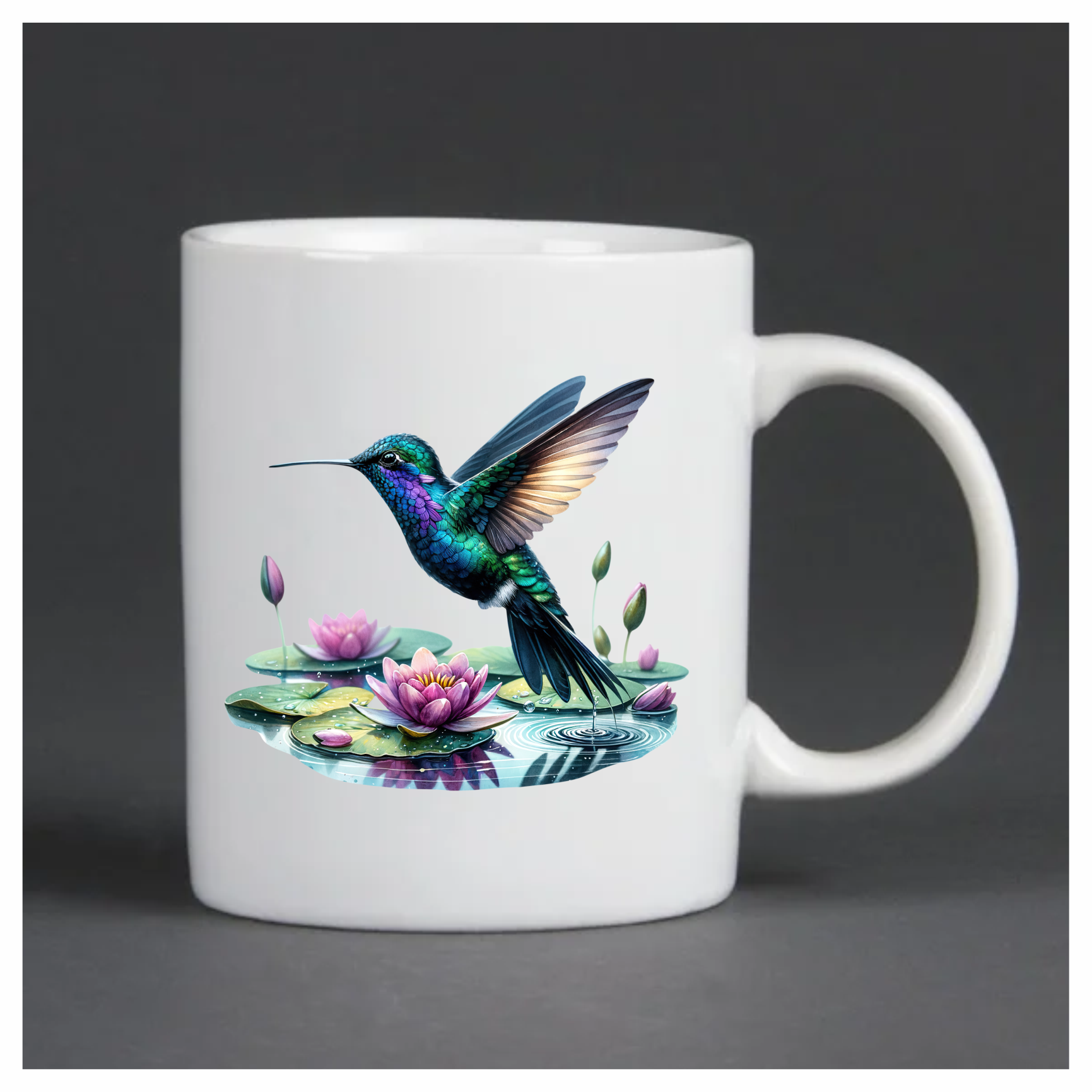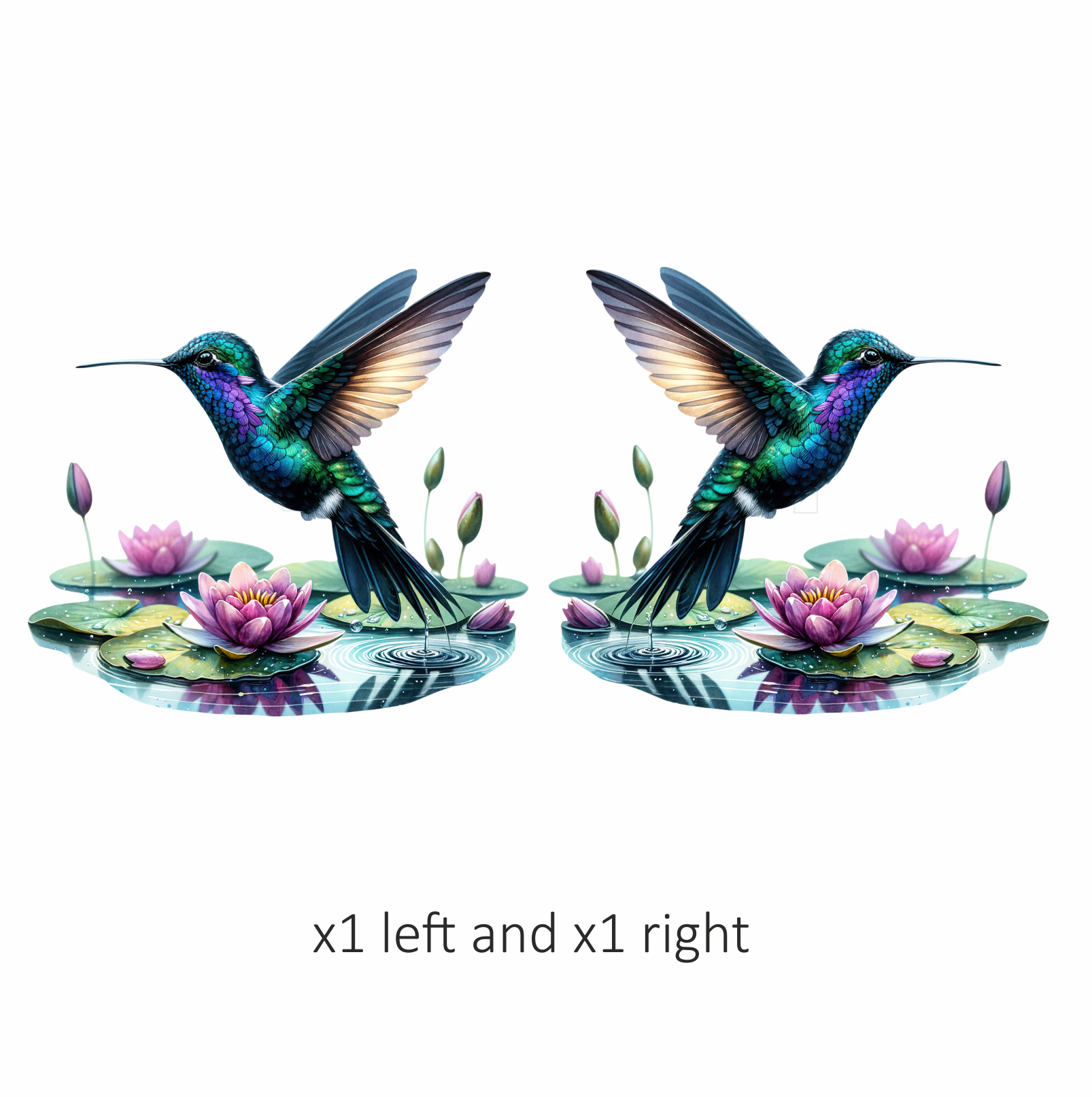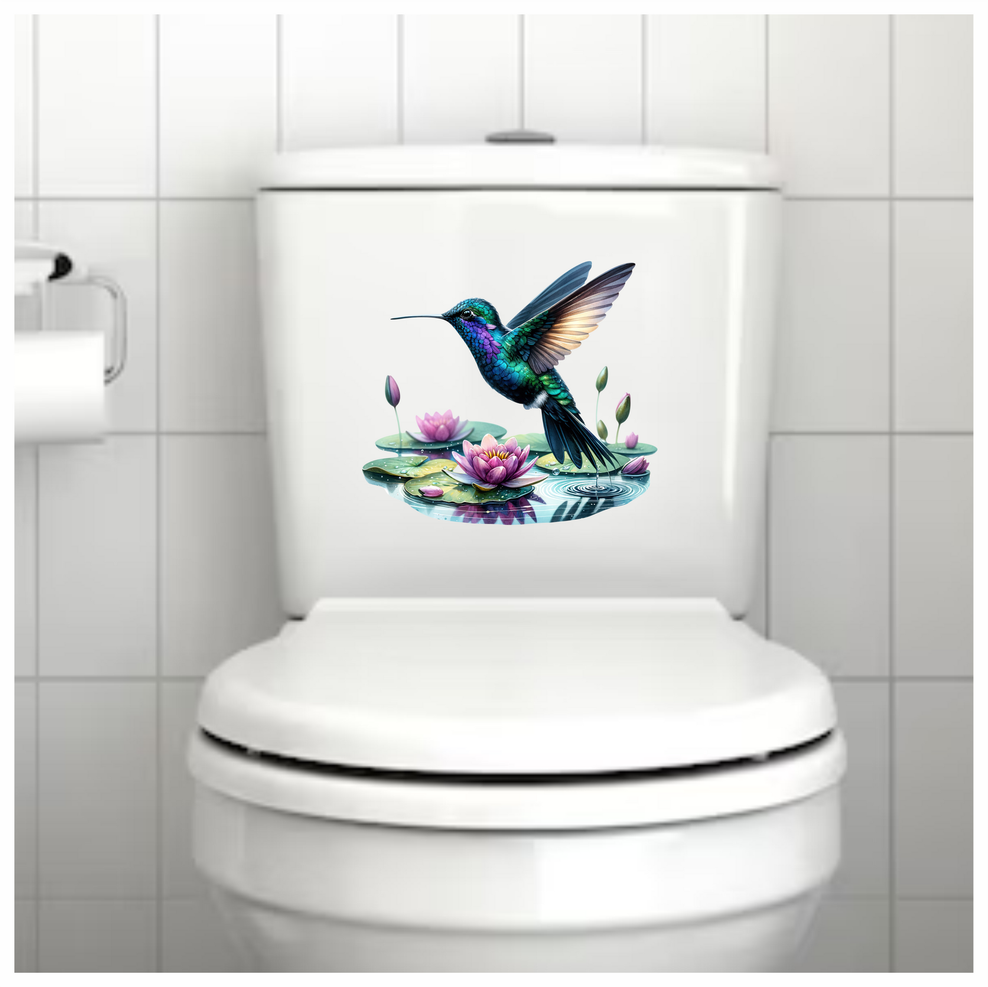Blue Hummingbird Bird Flying Over Water Vinyl Sticker Decal