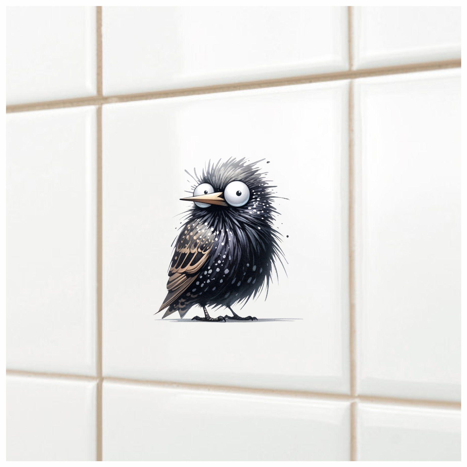 Black Starling Bird With White Spots Vinyl Sticker Decal