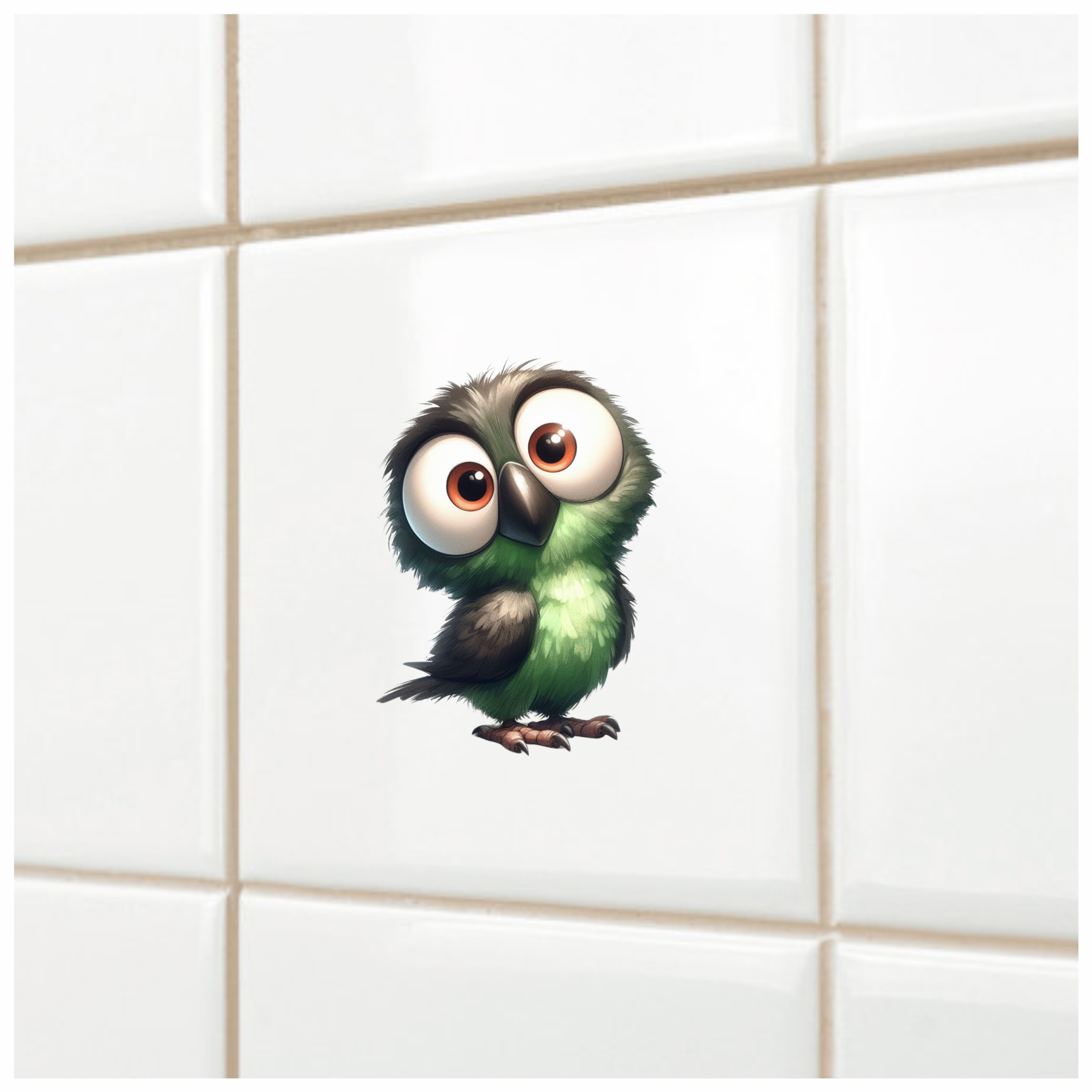 Green Owl Bird With Big Eyes Vinyl Sticker Decal