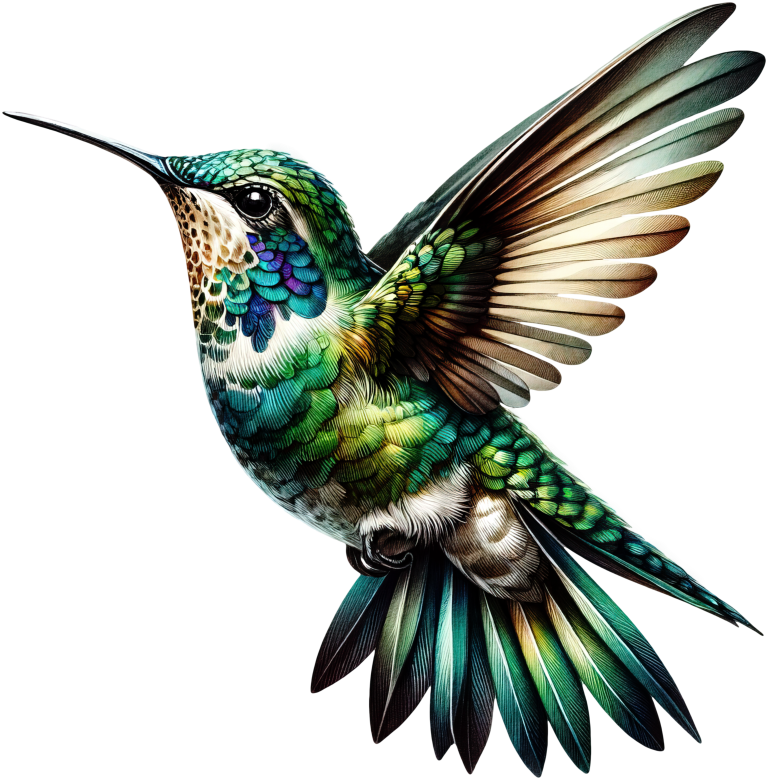 Green Hummingbird Flying Open Wings Vinyl Sticker Decal