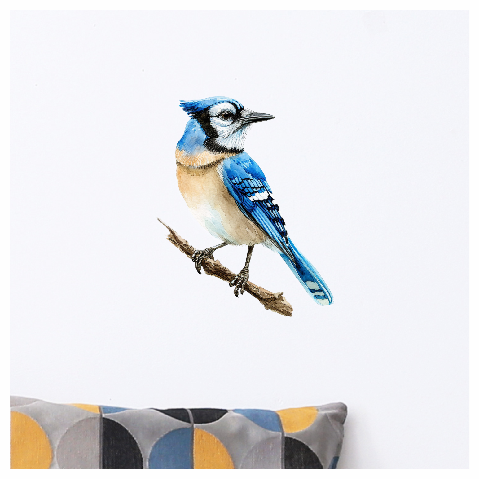 Blue Jay Bird Perched Branch Vinyl Sticker Decal