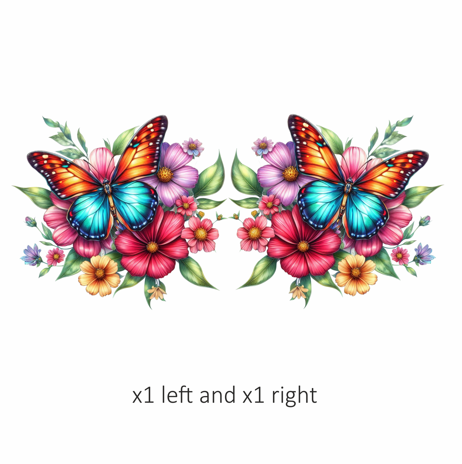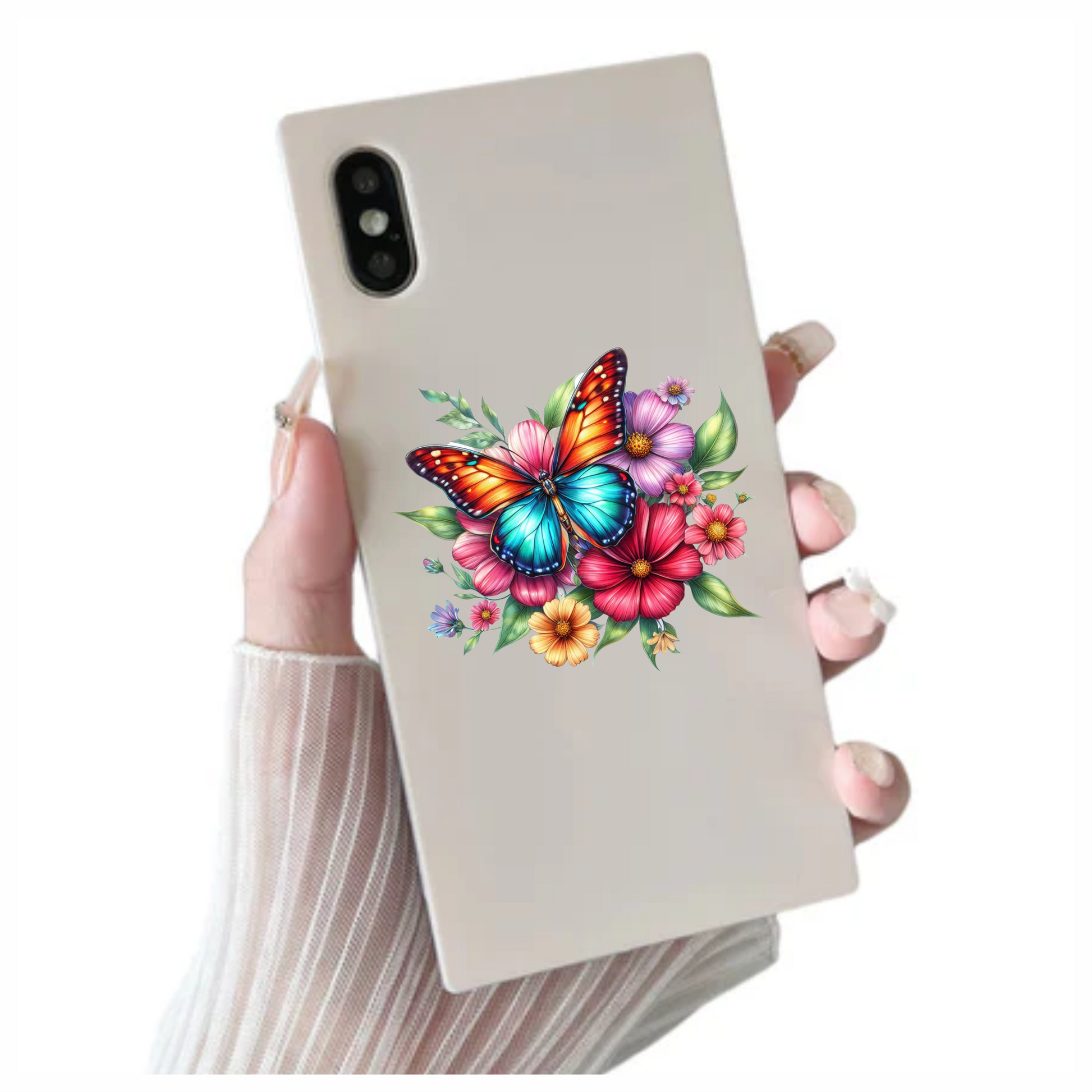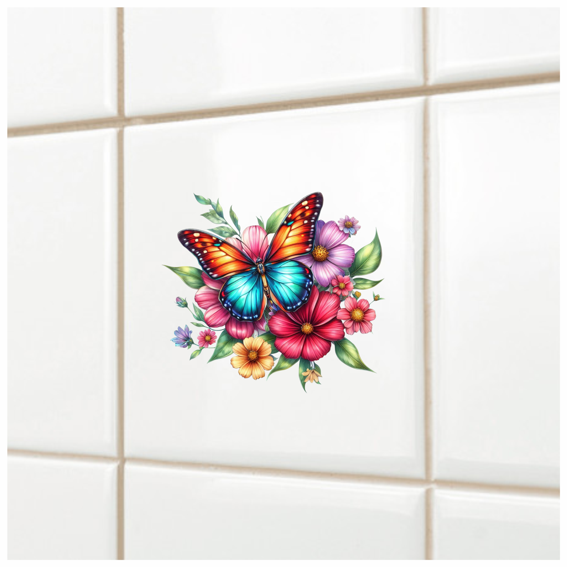 Blue Butterfly On Cosmos Flowers Vinyl Sticker Decal