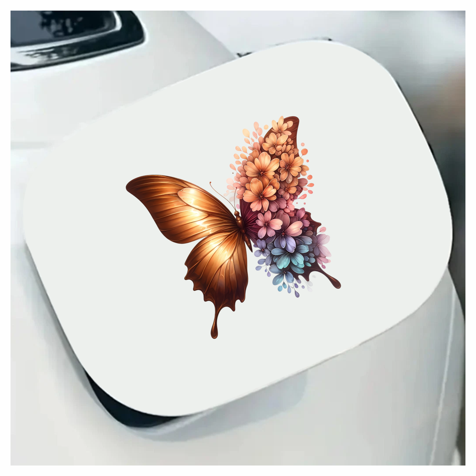 Gold Butterfly With Colorful Flowers Vinyl Sticker Decal
