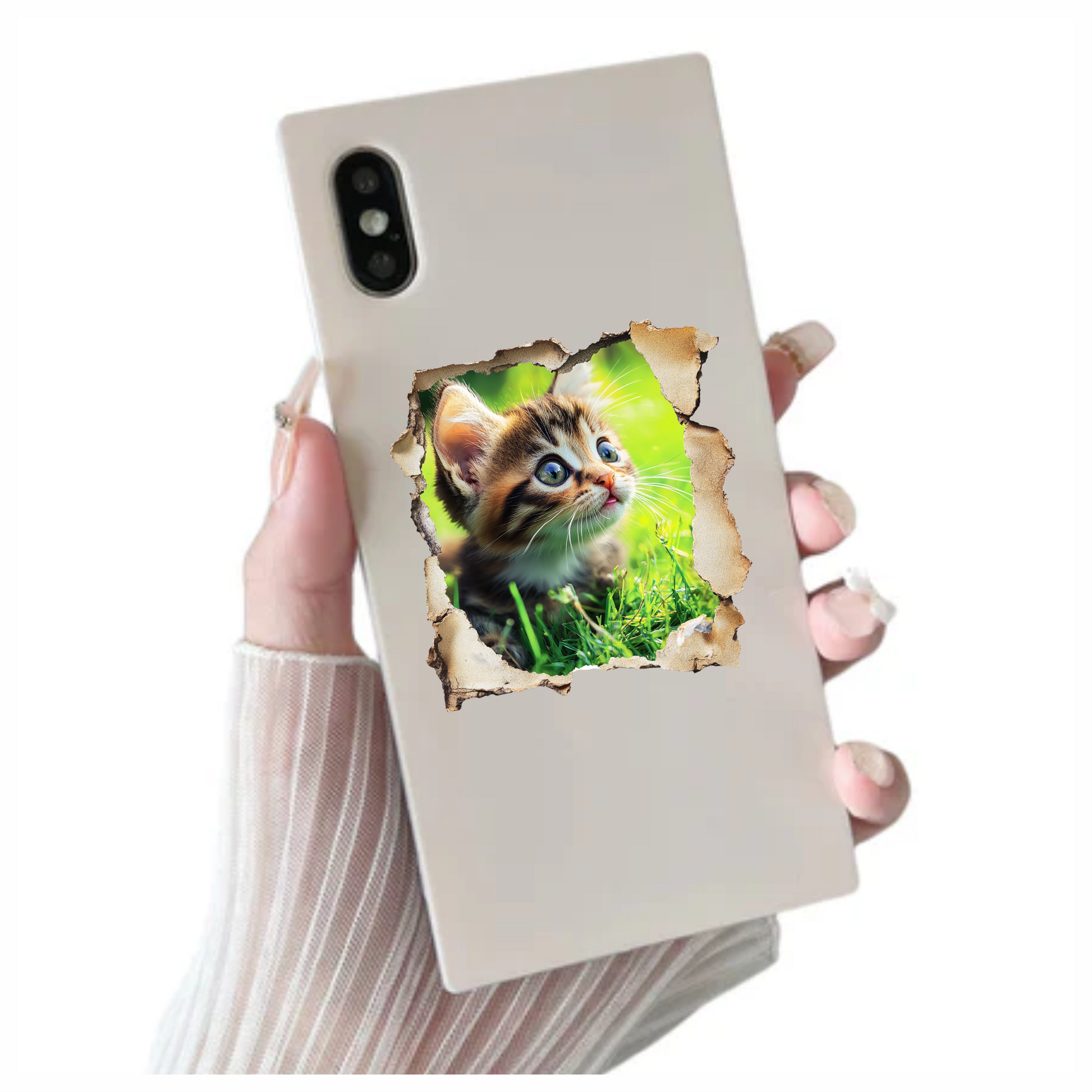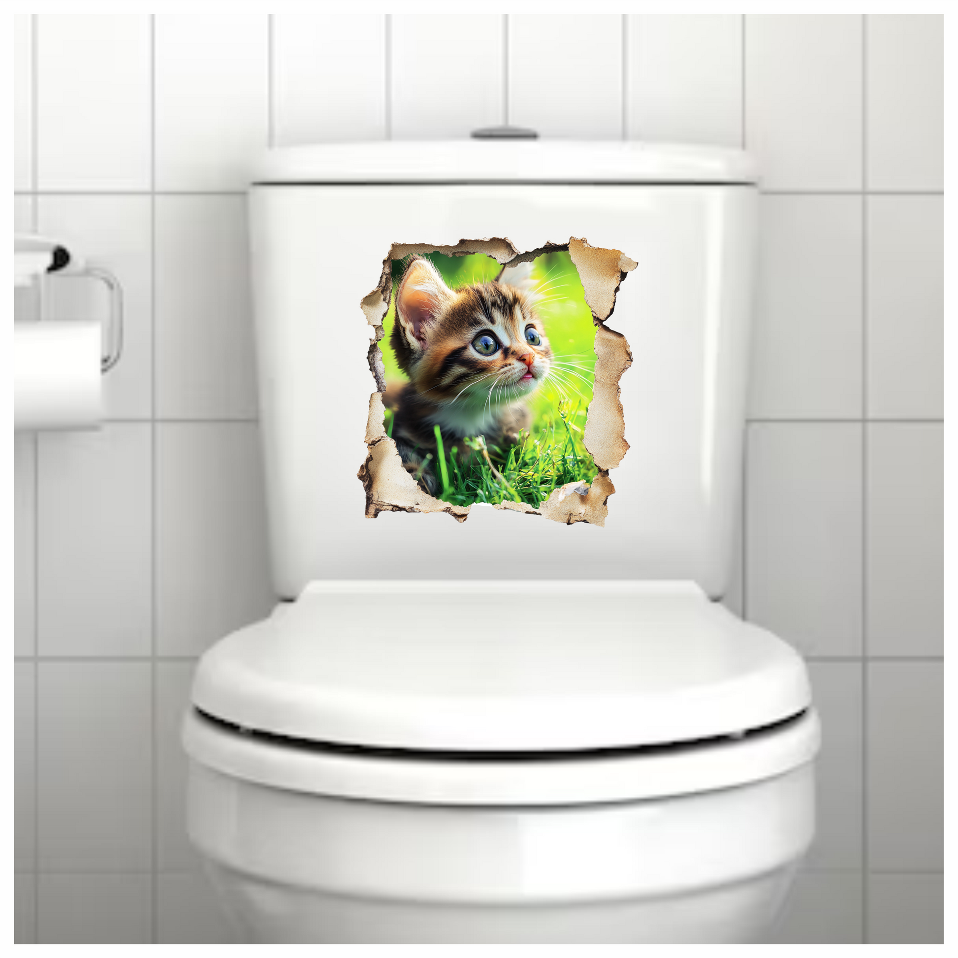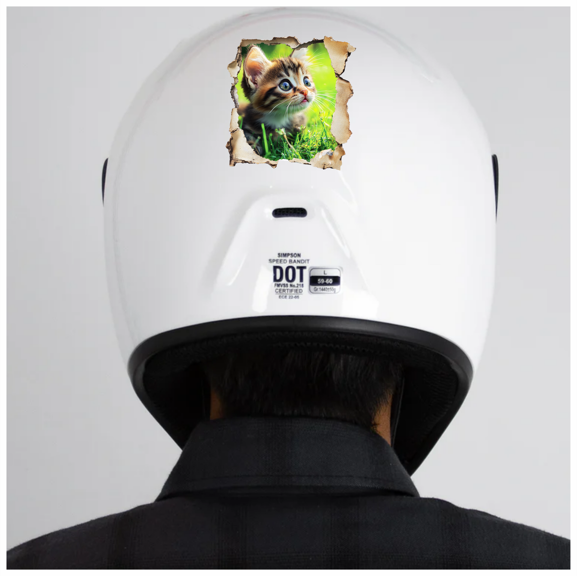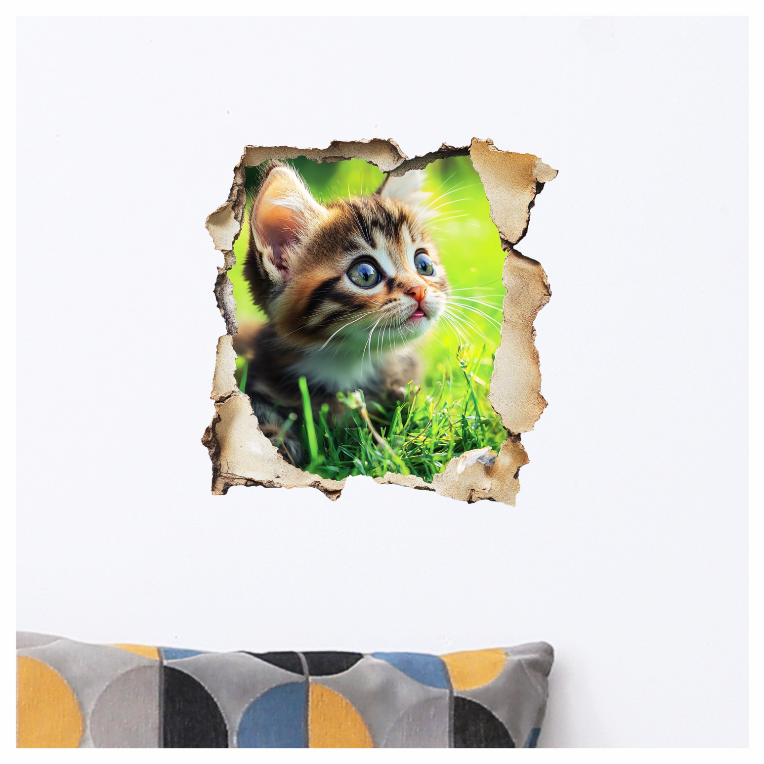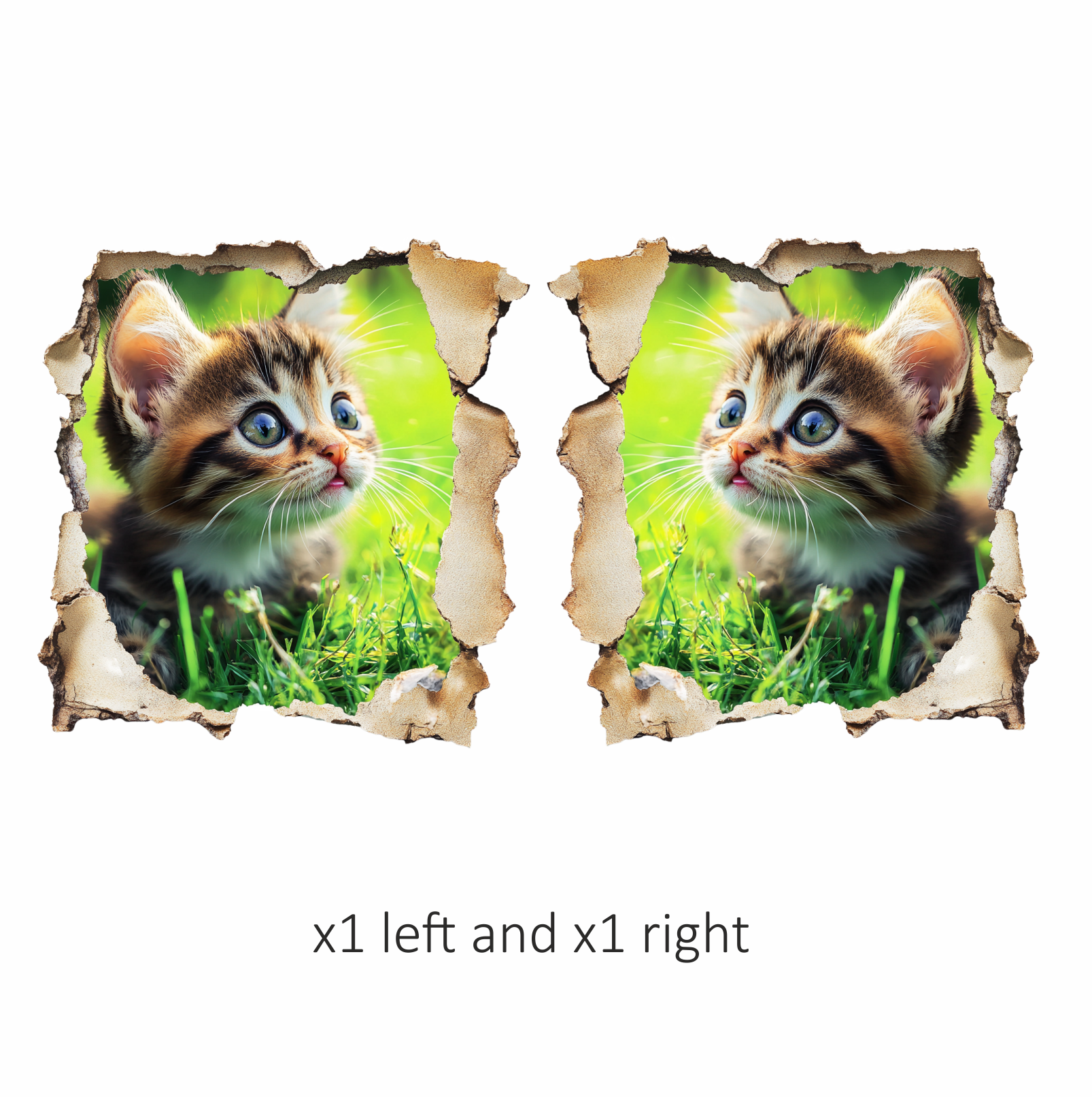 Brown Kitten Sitting On Green Grass Vinyl Sticker Decal