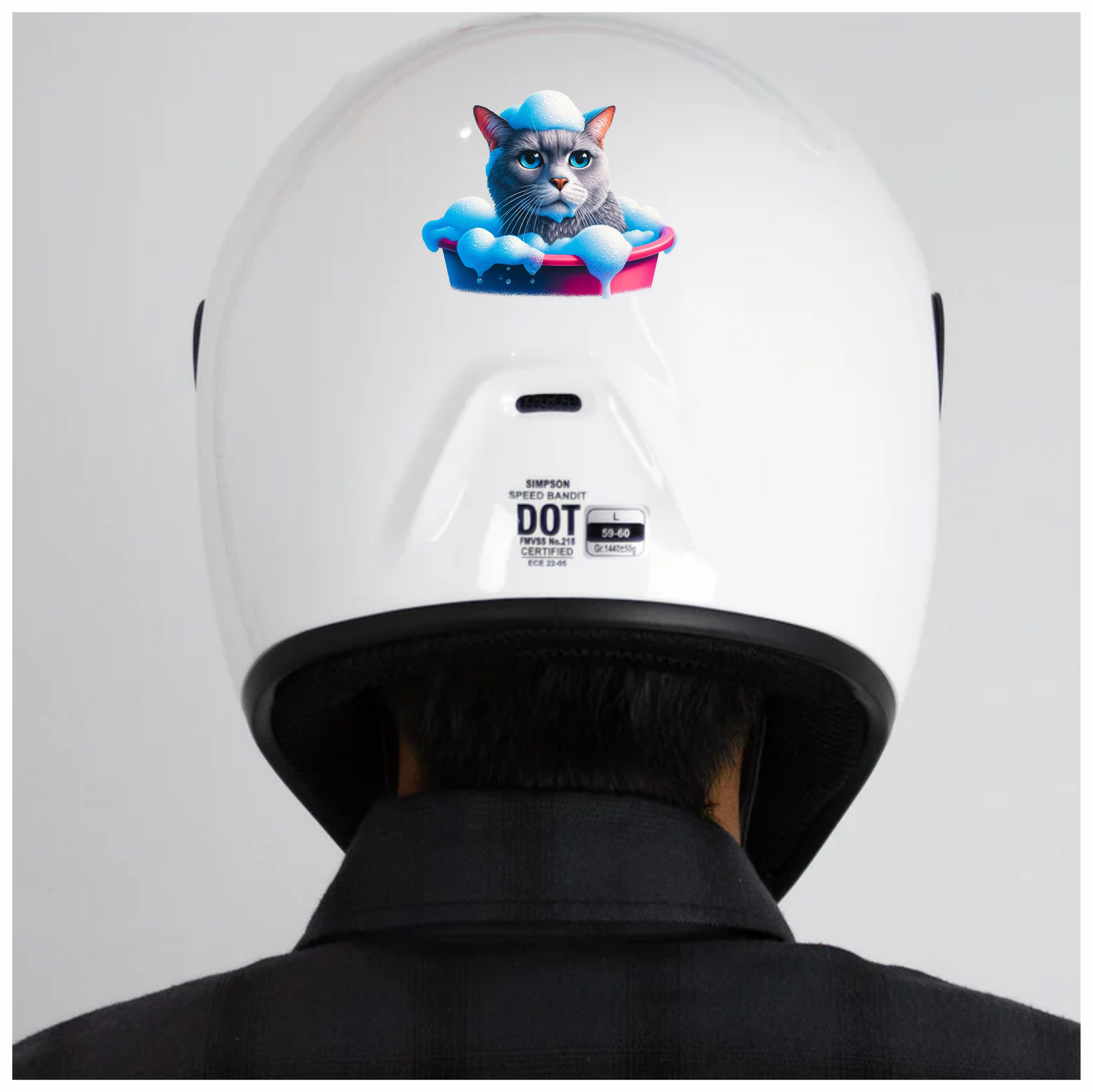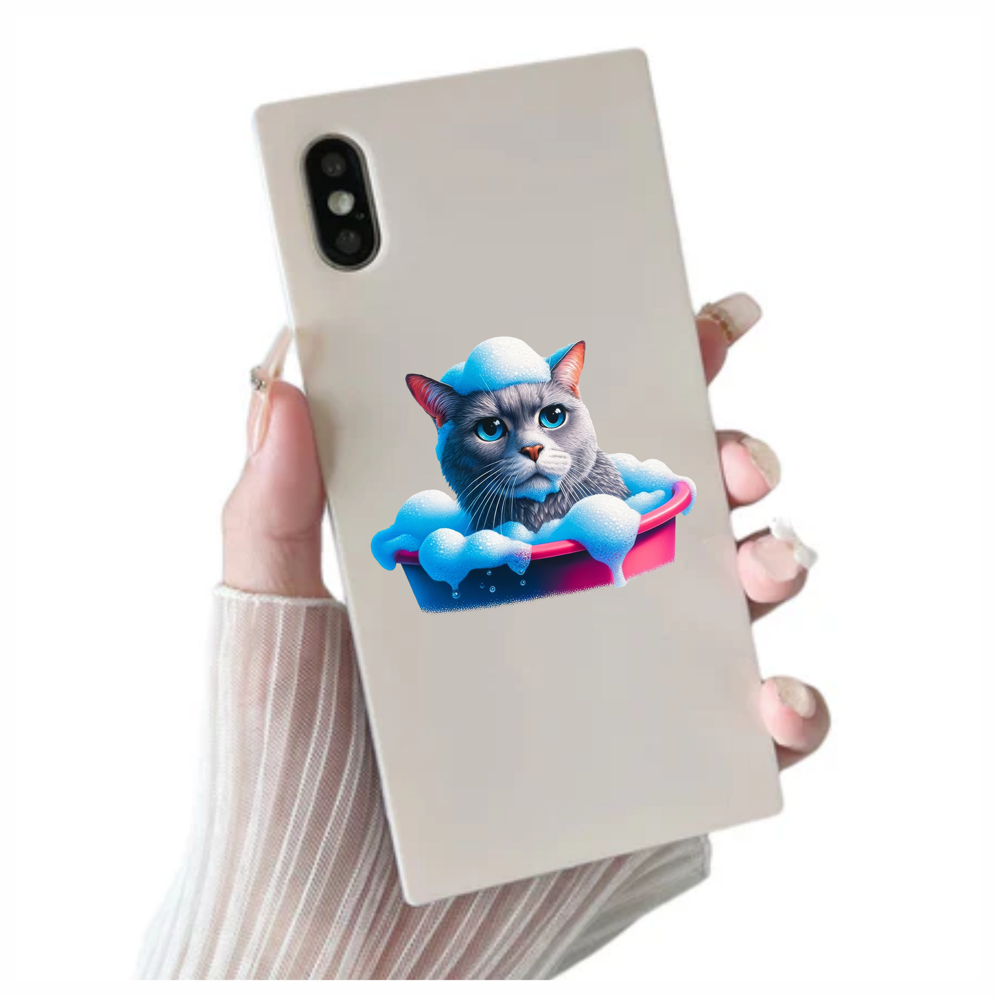 Gray Cat In Pink Bathtub Vinyl Sticker Decal