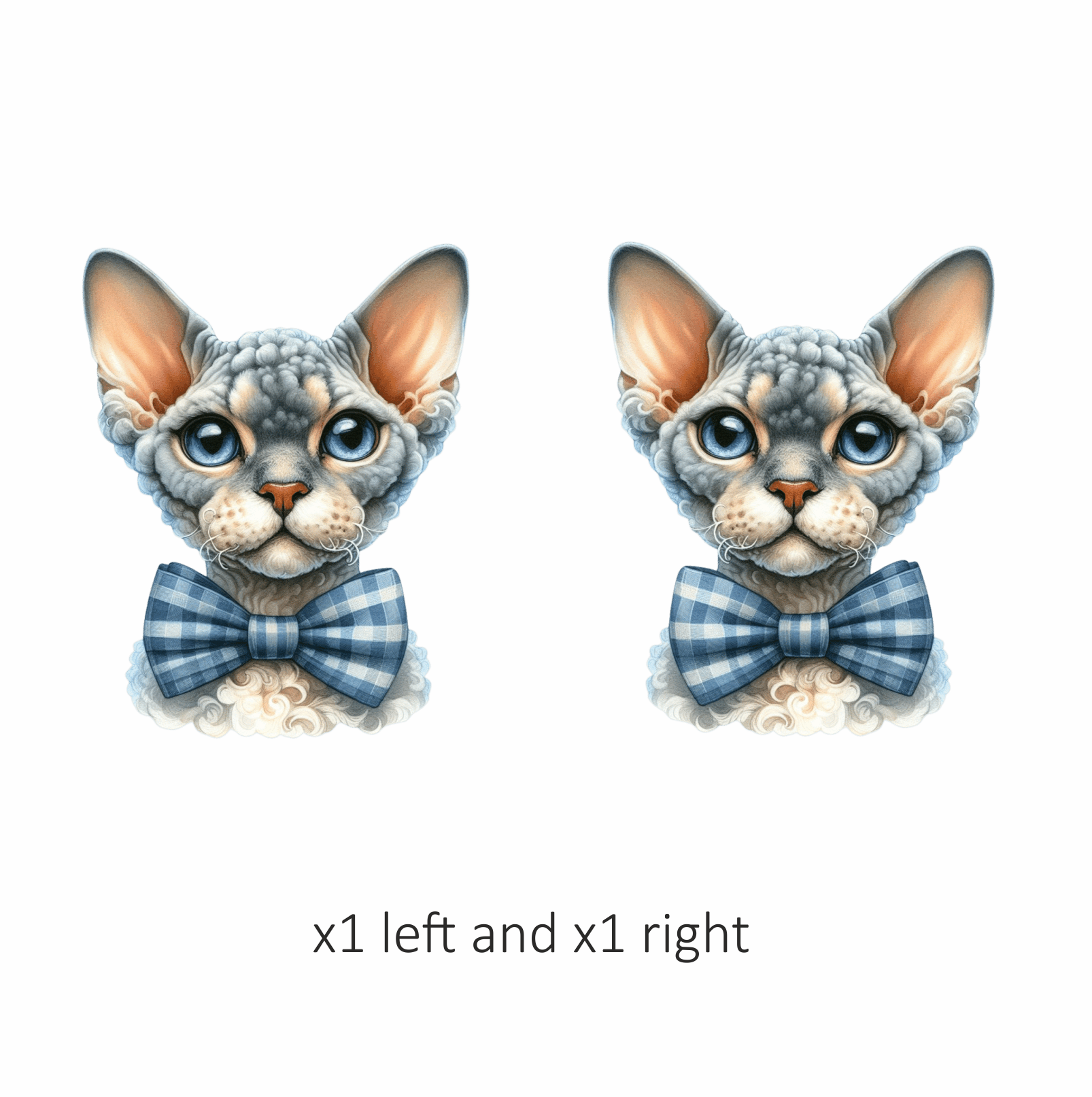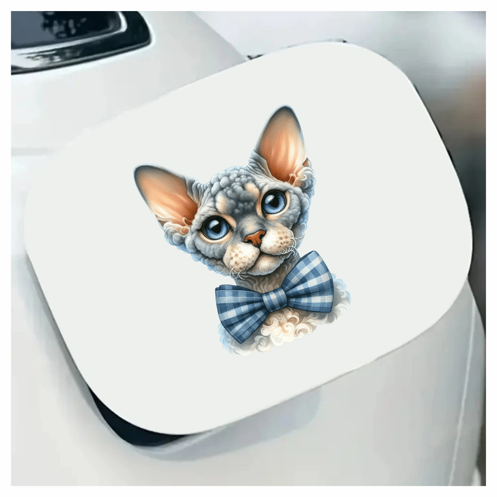 Gray Devon Rex Cat With Bow Vinyl Sticker Decal
