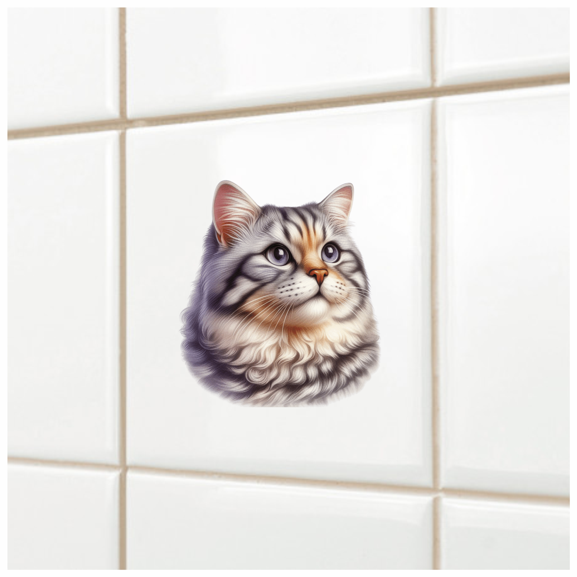 Gray Siberian Cat With Purple Eyes Vinyl Sticker Decal