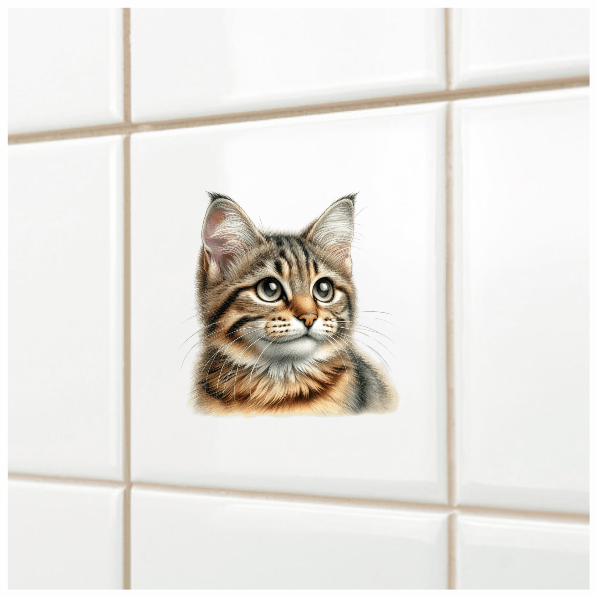 Brown Tabby Cat With Green Eyes Vinyl Sticker Decal