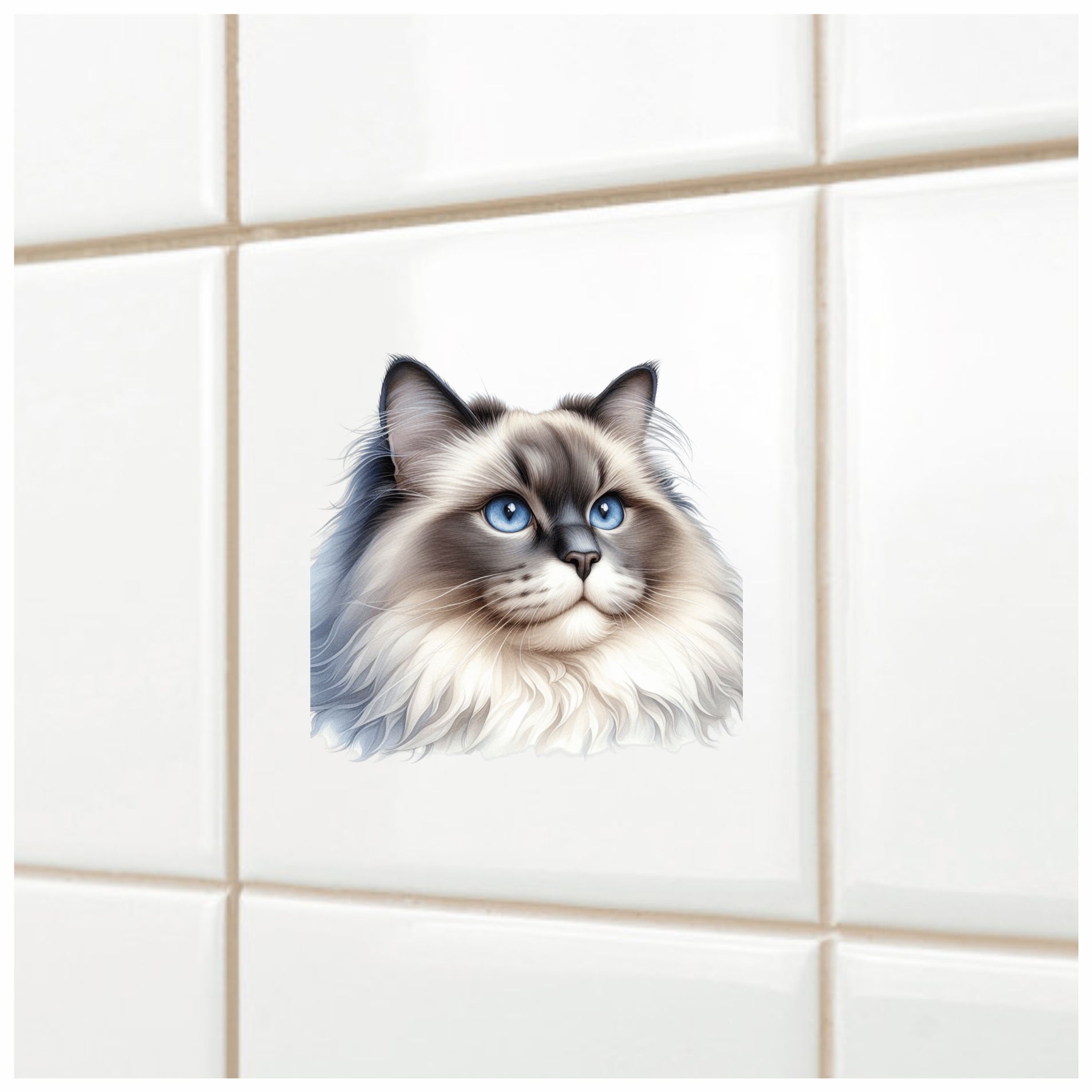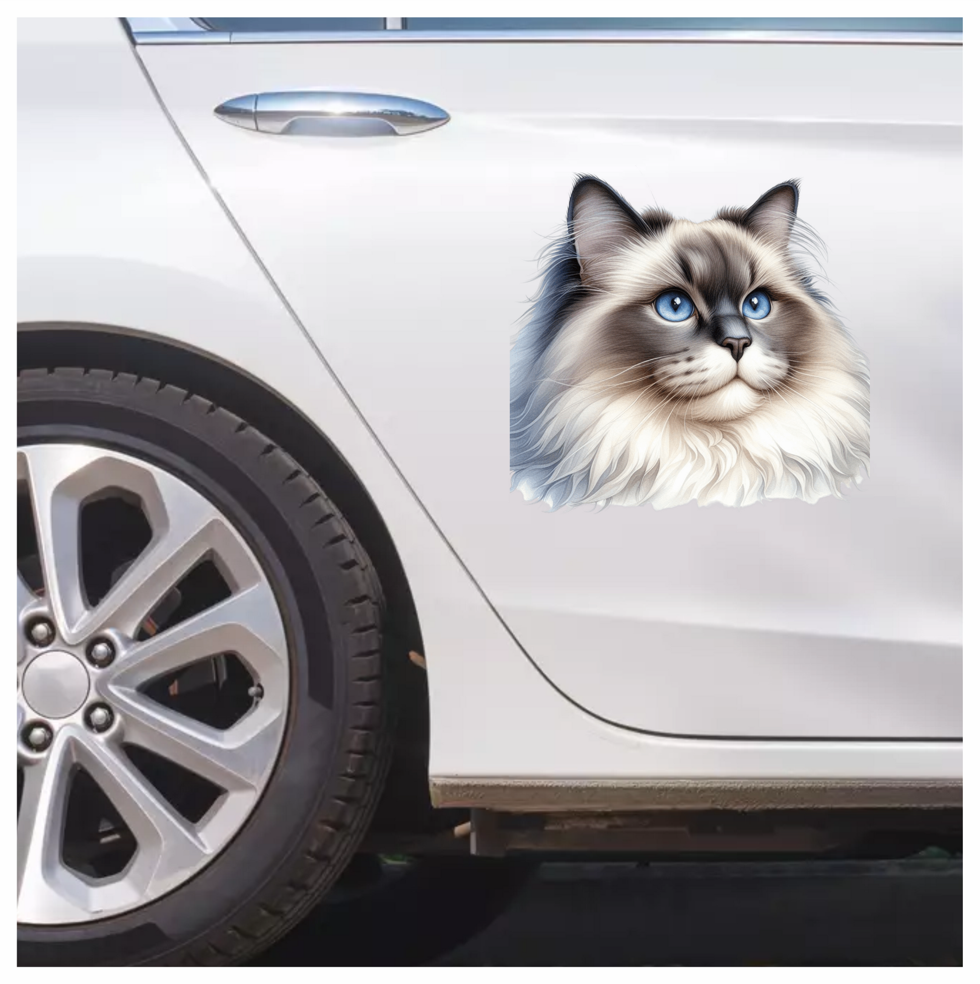 Blue Cat Ragdoll Fluffy Face Vinyl Sticker Decal