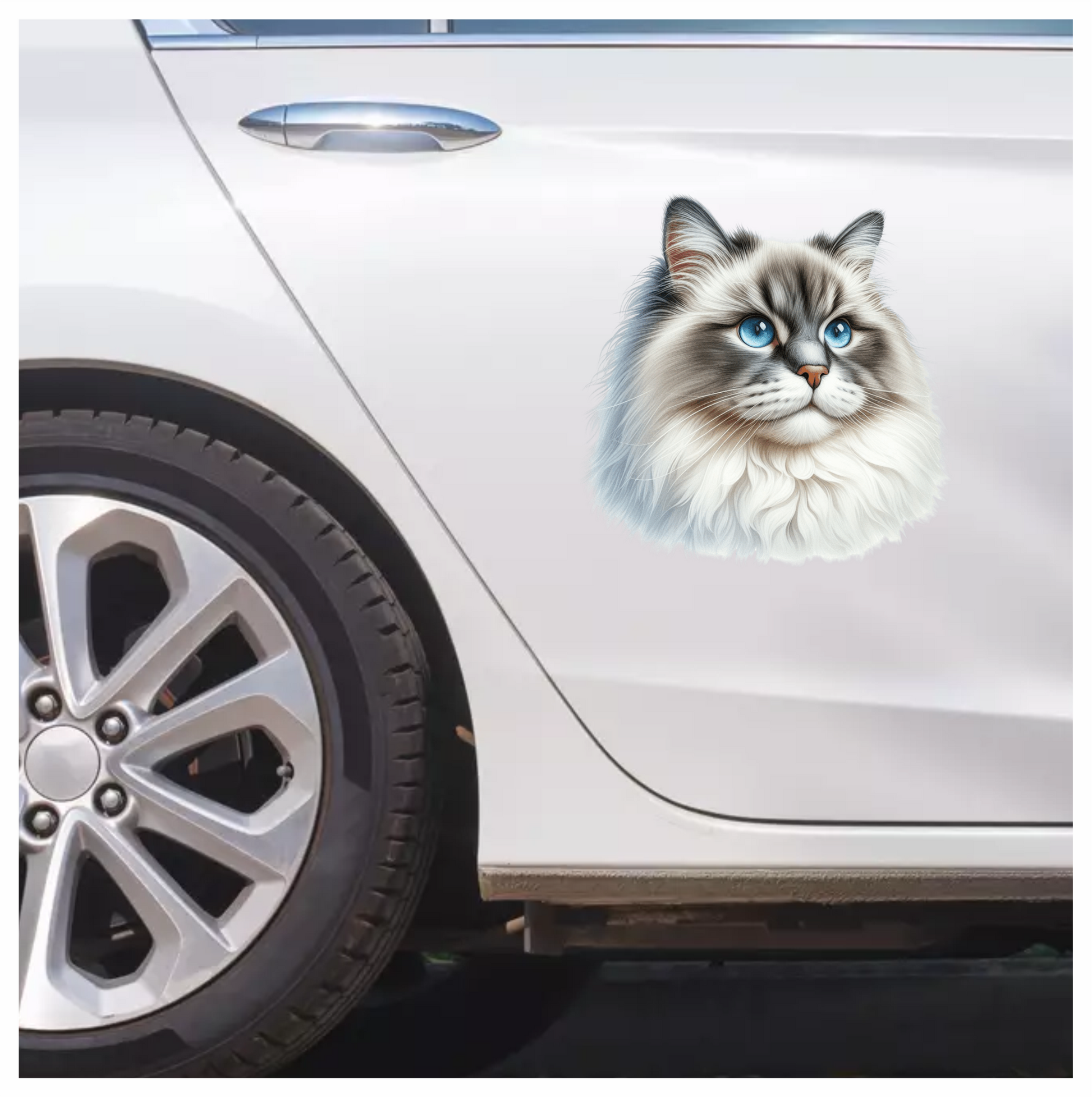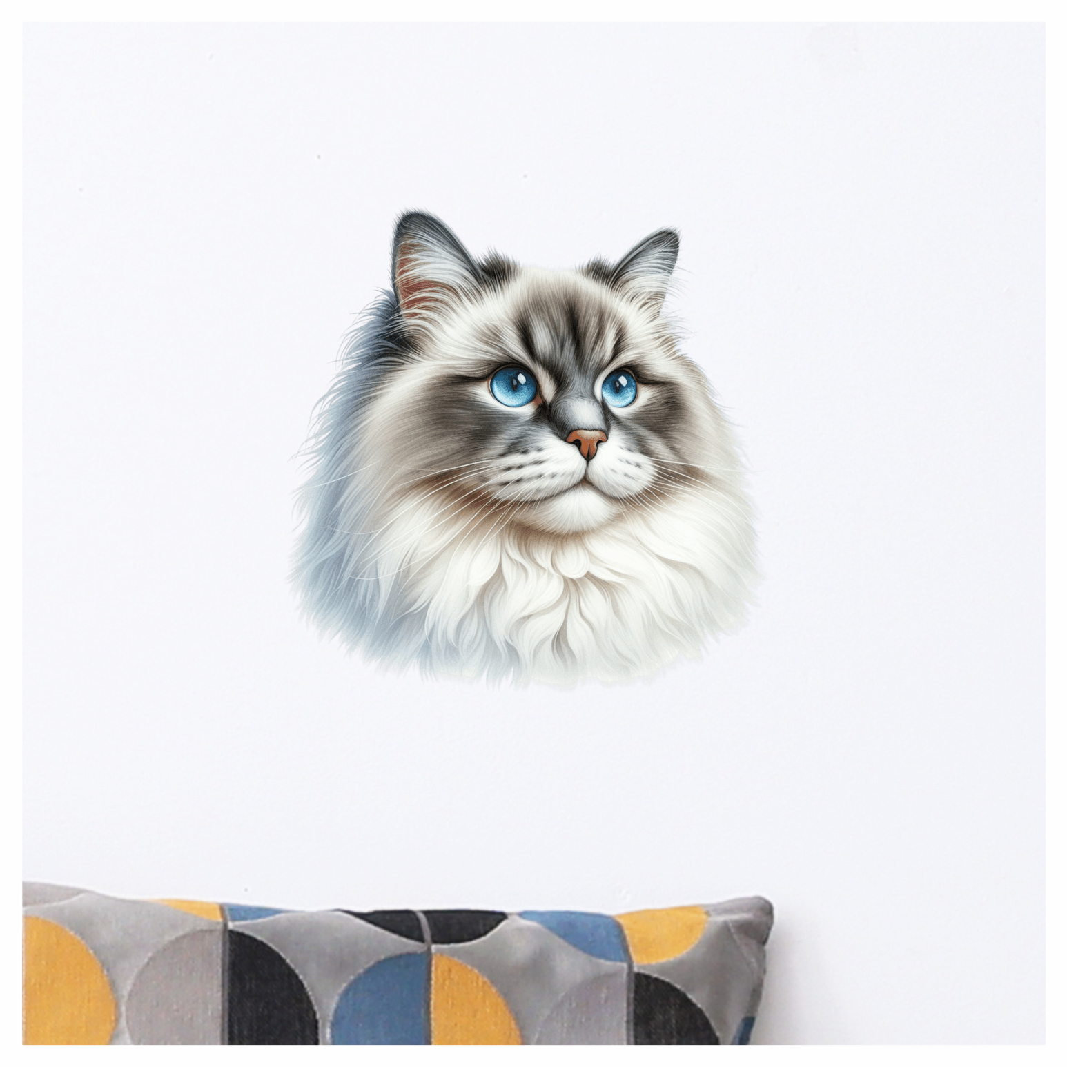 Blue Cat Ragdoll Fluffy Face Vinyl Sticker Decal