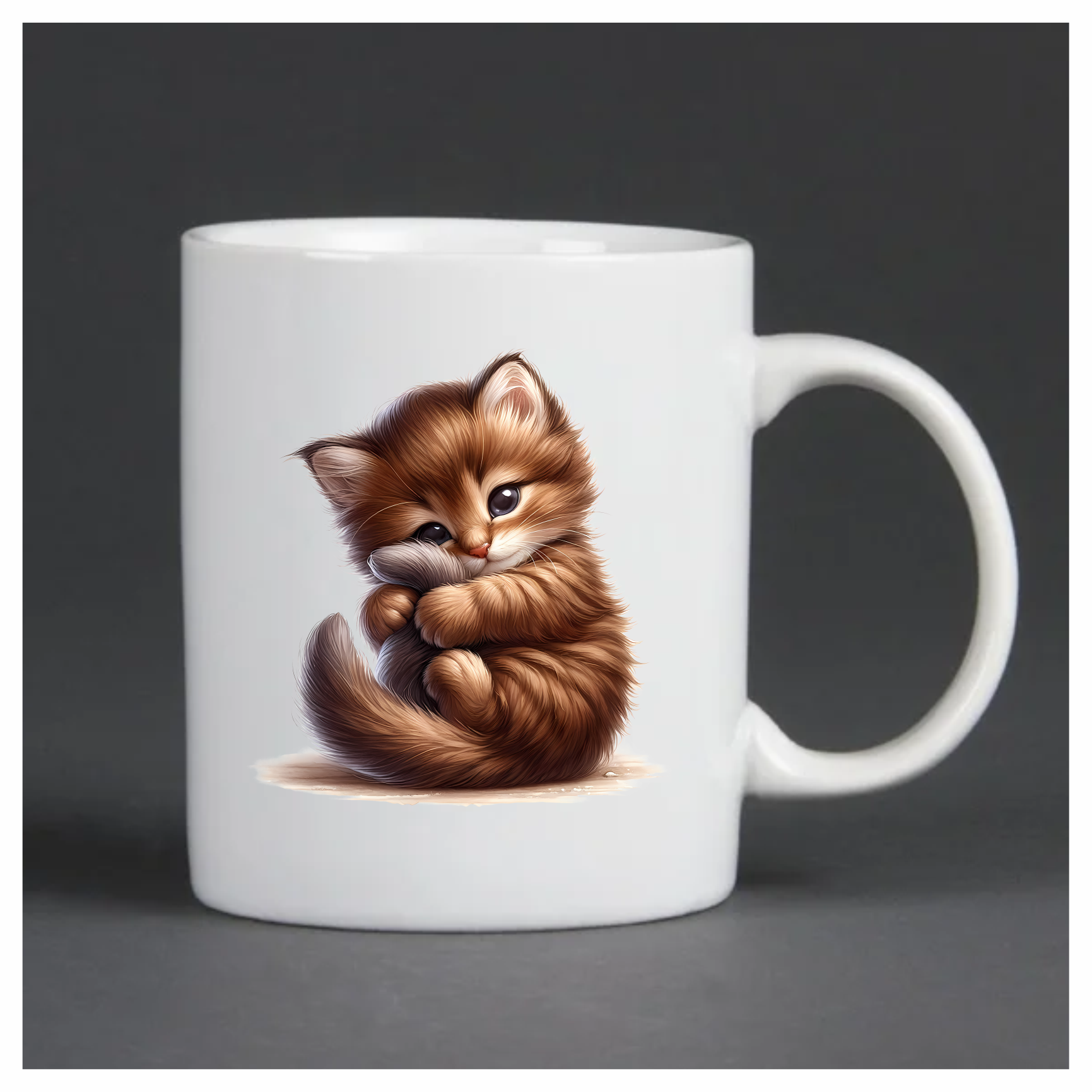 Brown Kitten Fluffy Tail Cute Vinyl Sticker Decal