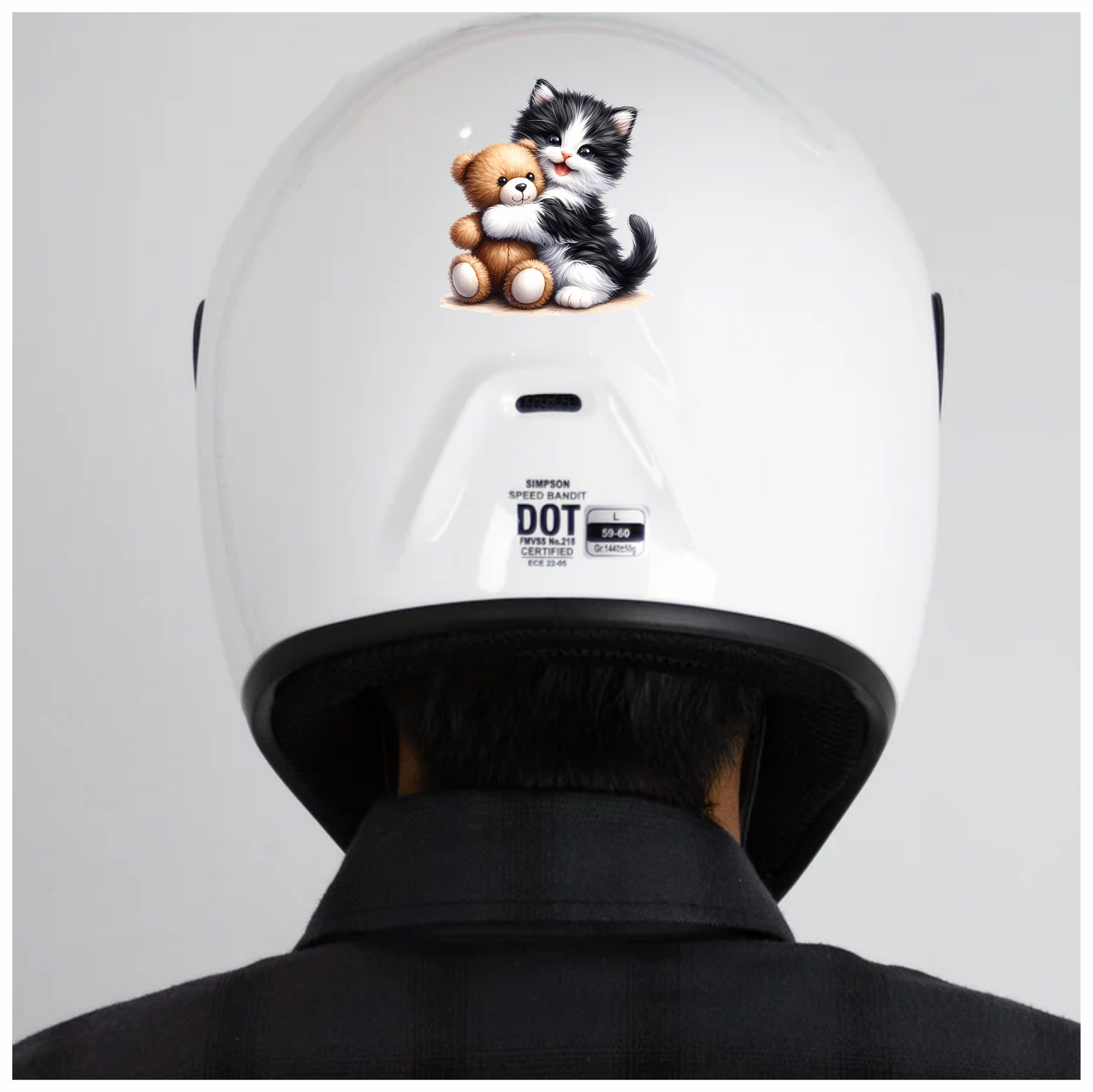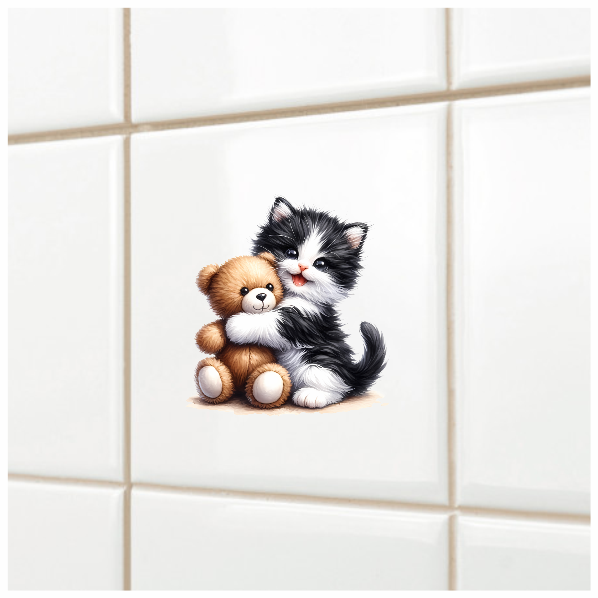 Black White Kitten Hugging Brown Teddy Vinyl Sticker Decal