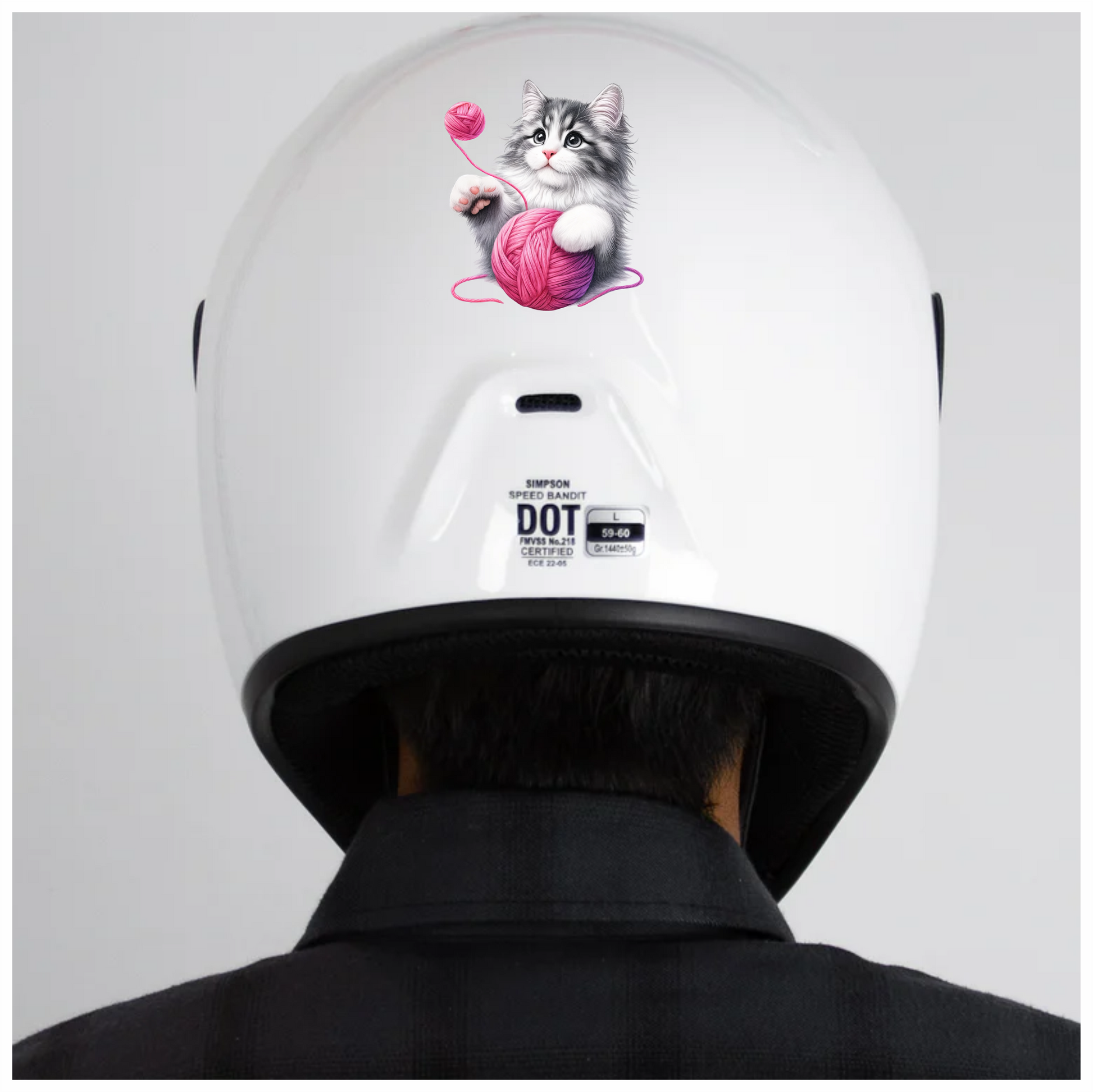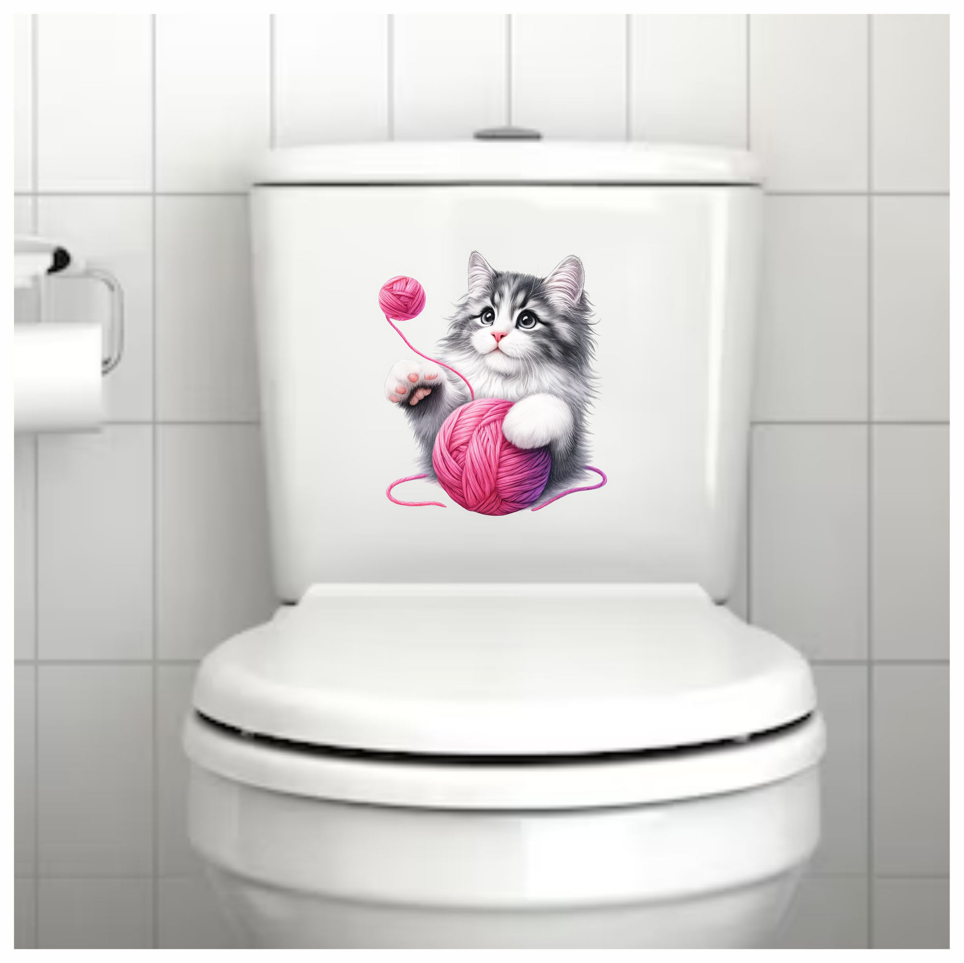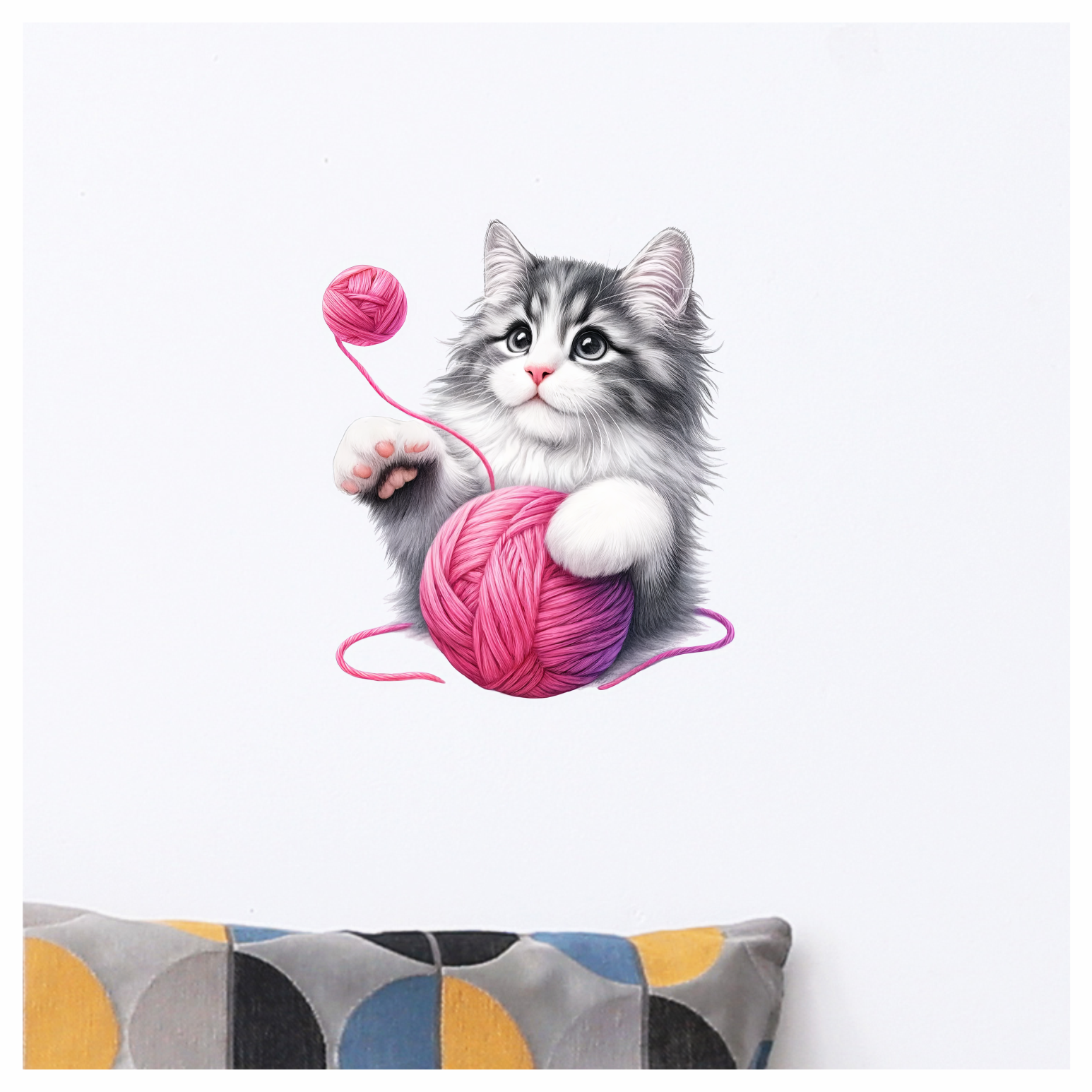 Gray White Kitten Pink Yarn Vinyl Sticker Decal