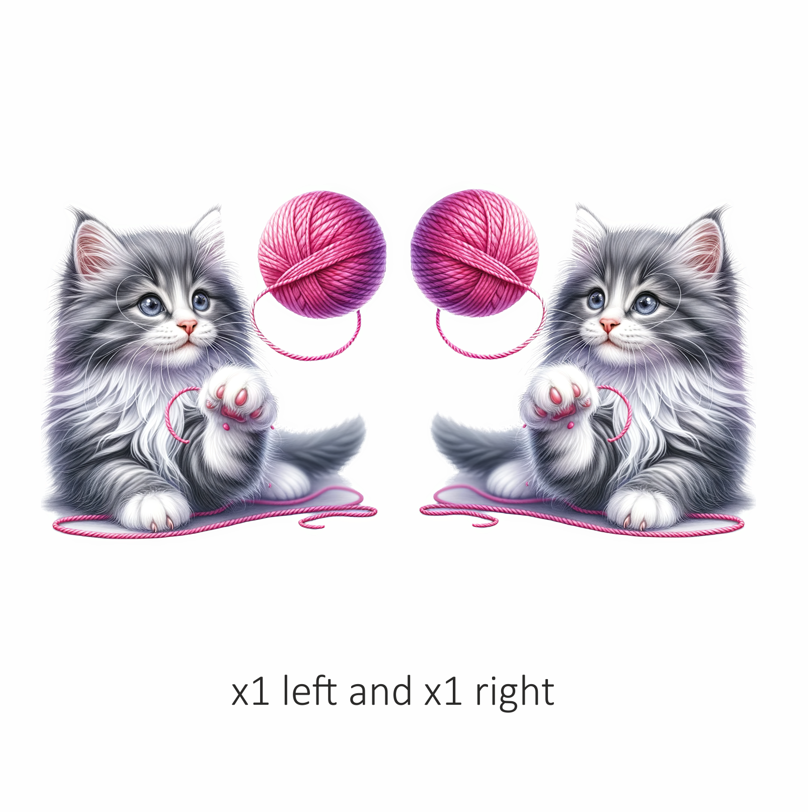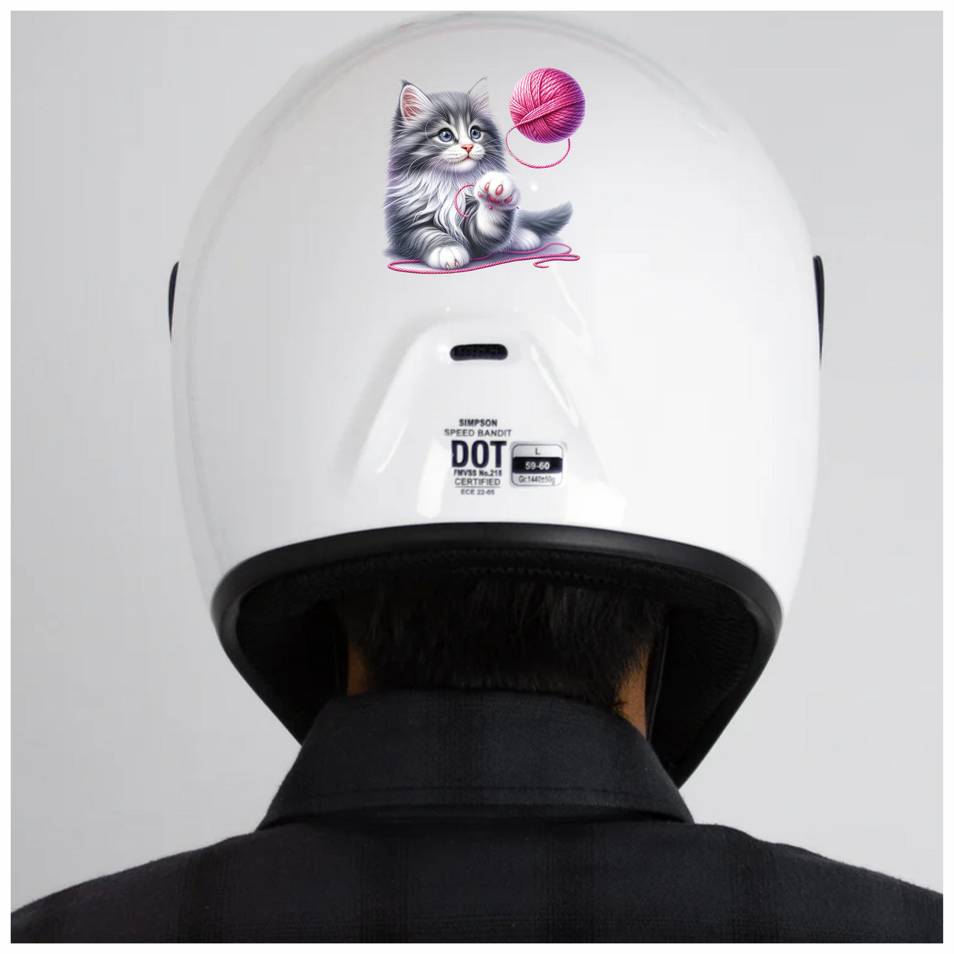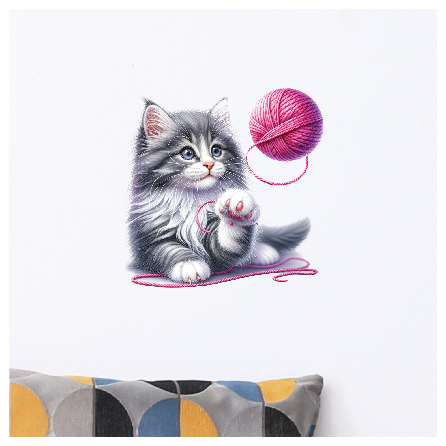 Gray White Kitten Fluffy Yarn Vinyl Sticker Decal