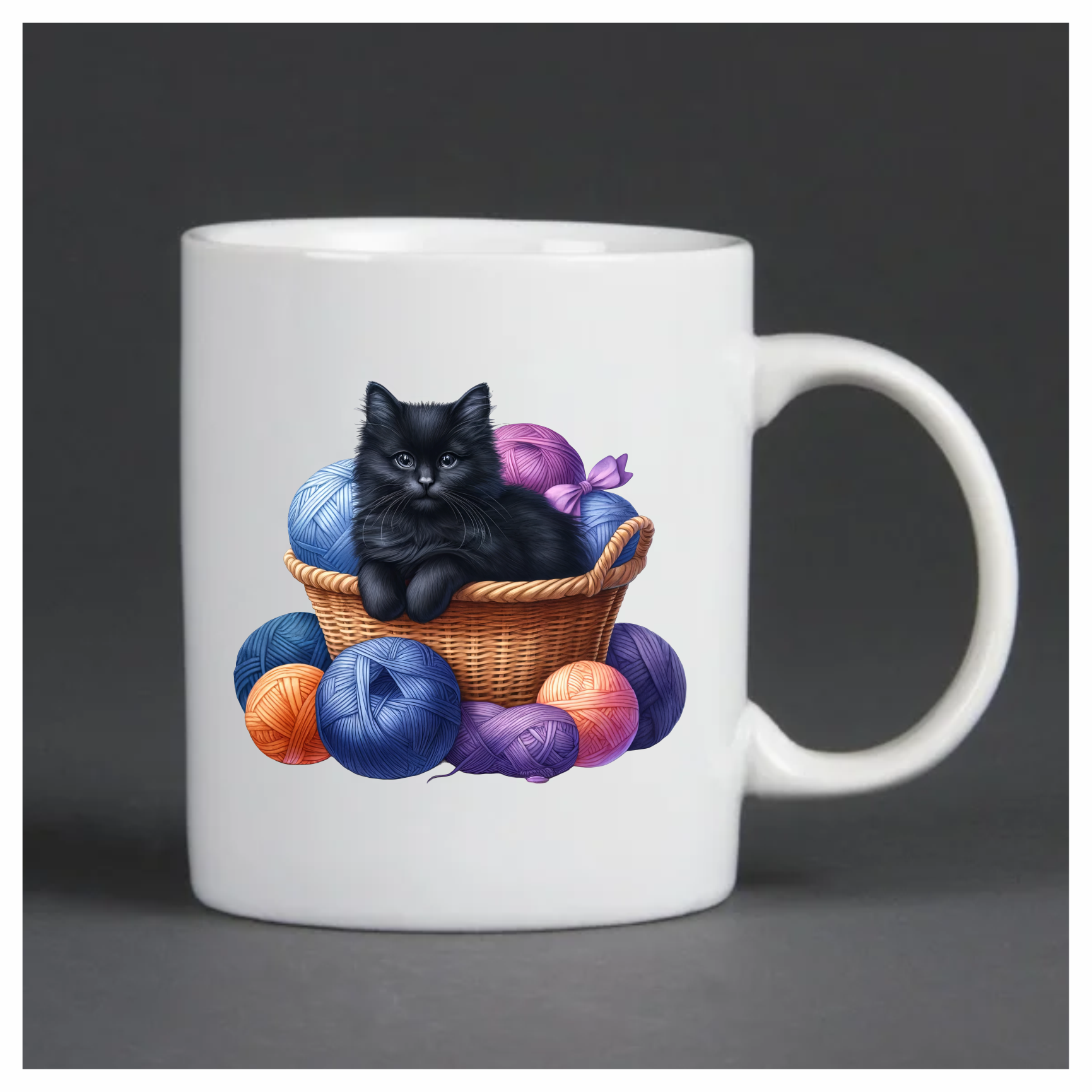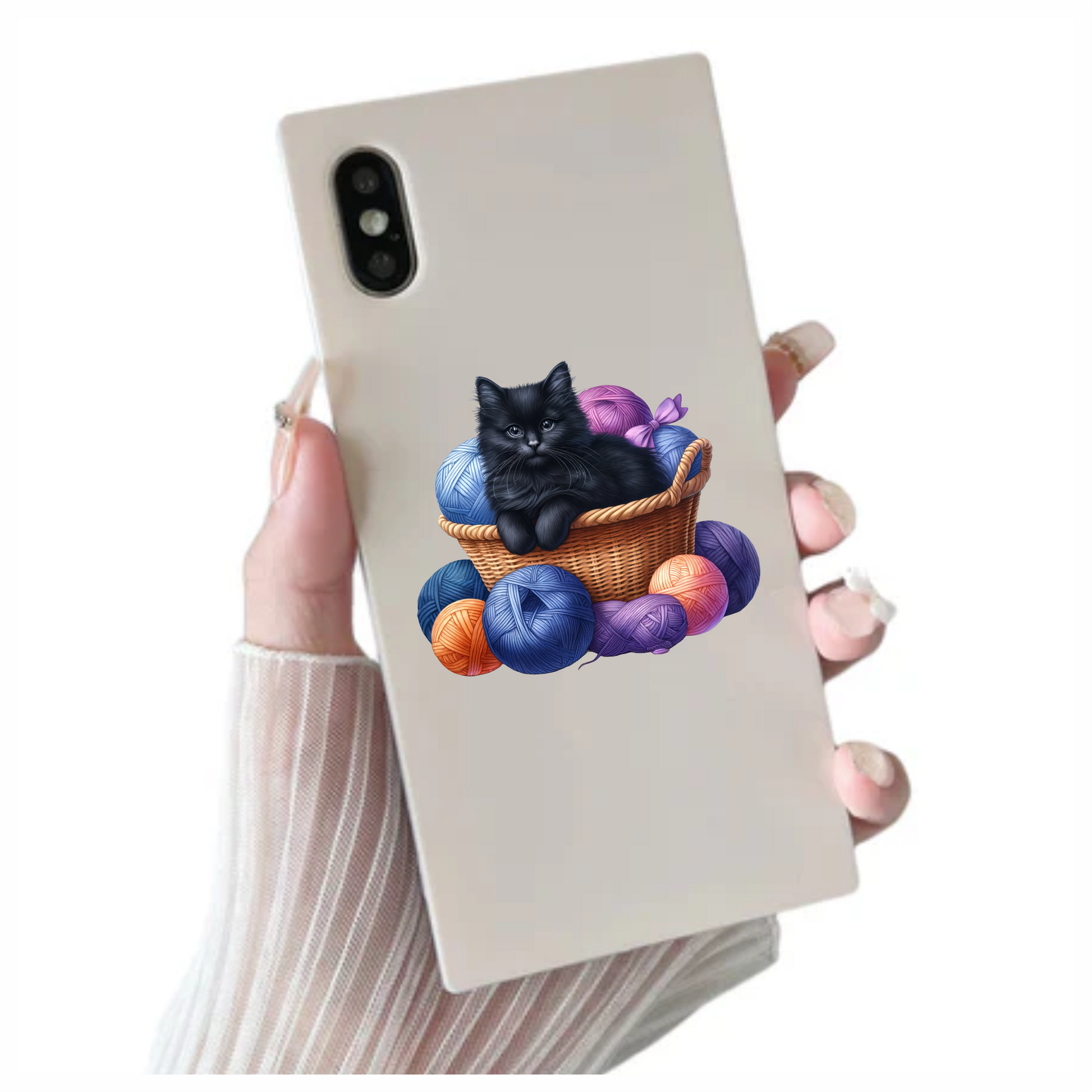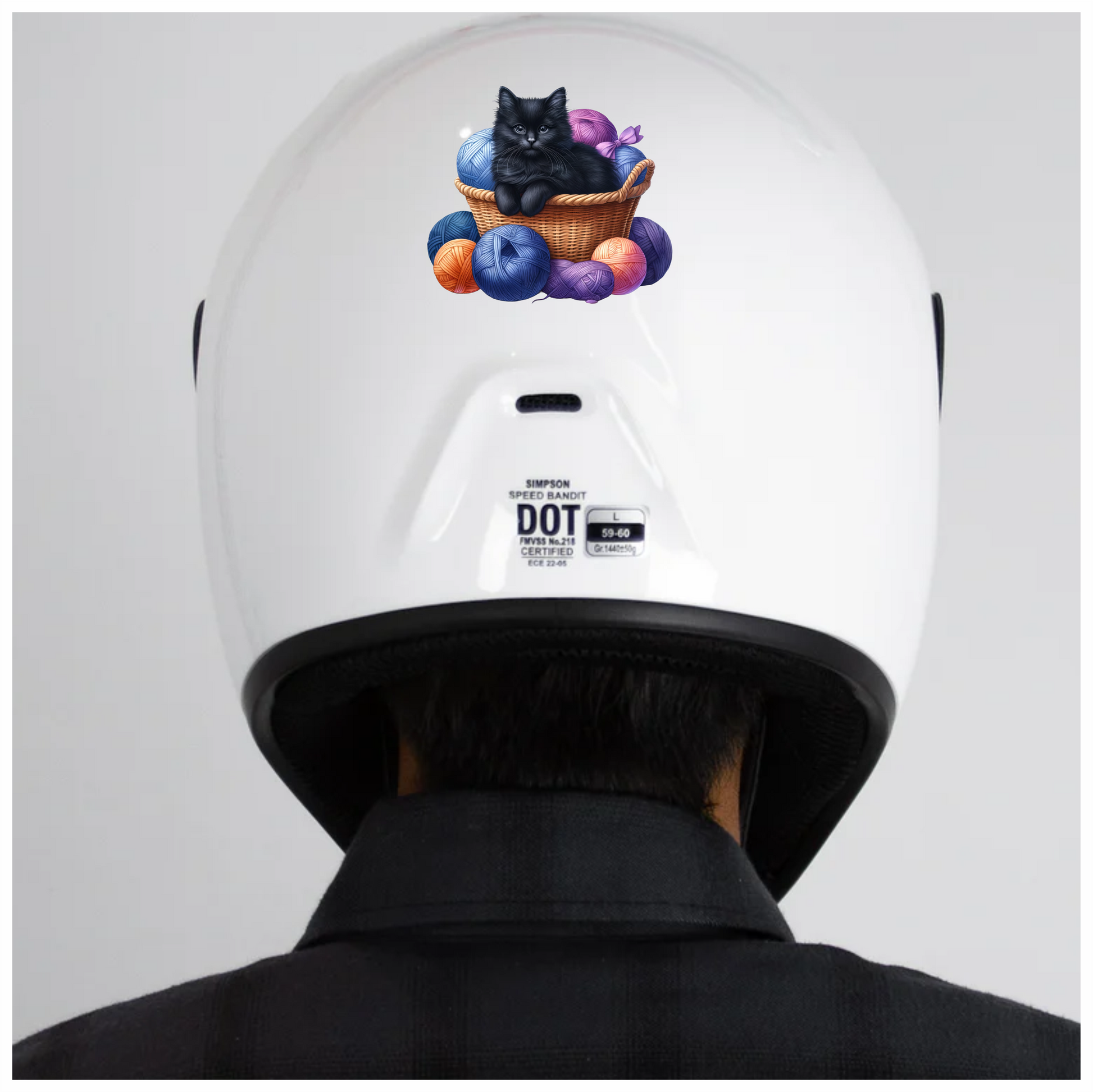 Black Kitten In Basket With Yarn Vinyl Sticker Decal