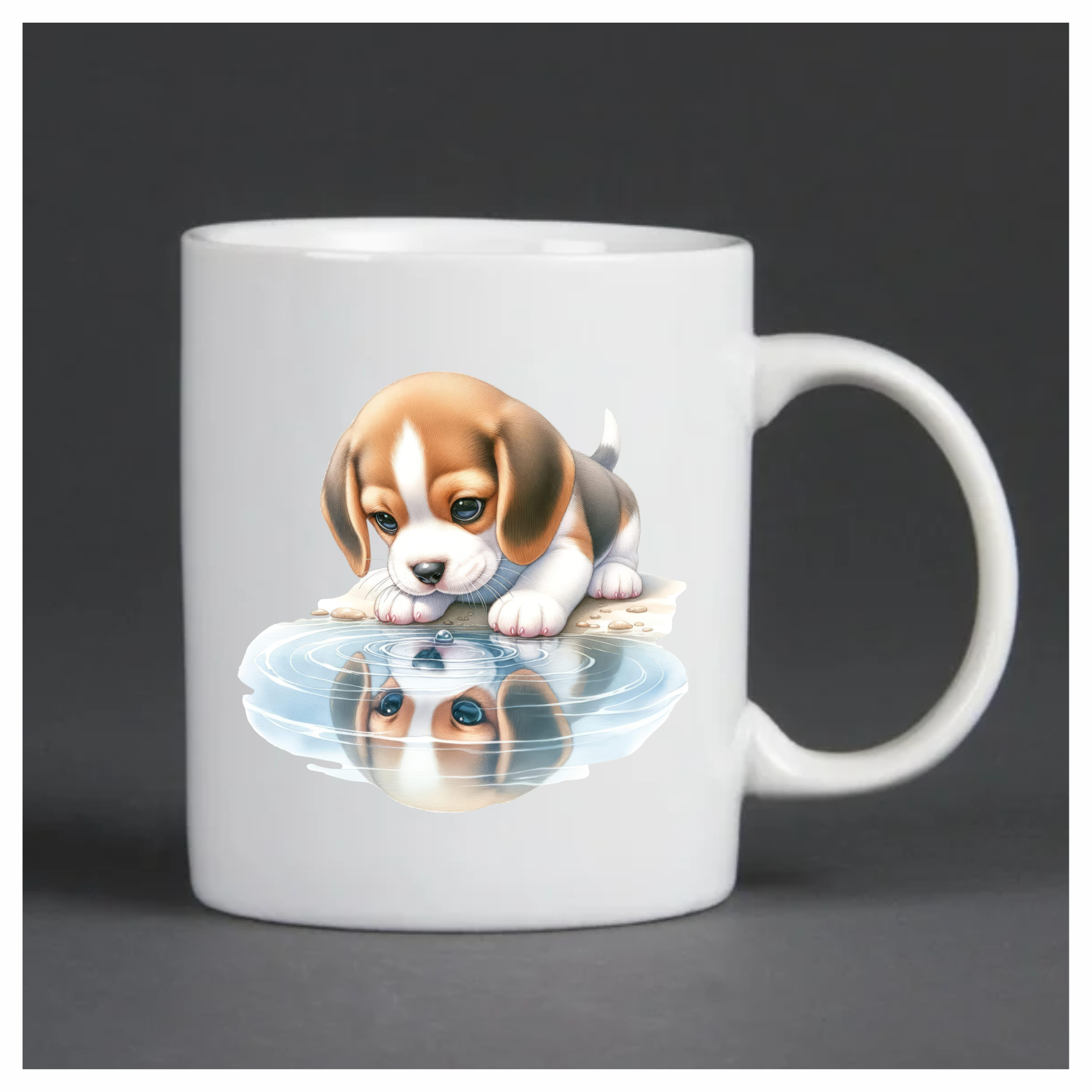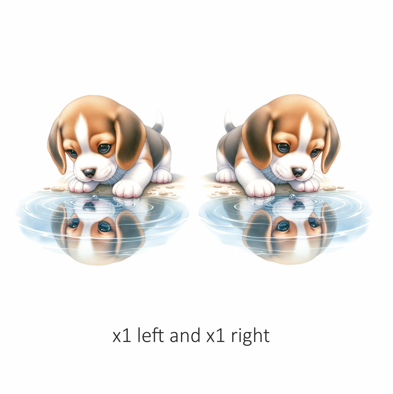 Brown Puppy Beagle Water Reflection Vinyl Sticker Decal