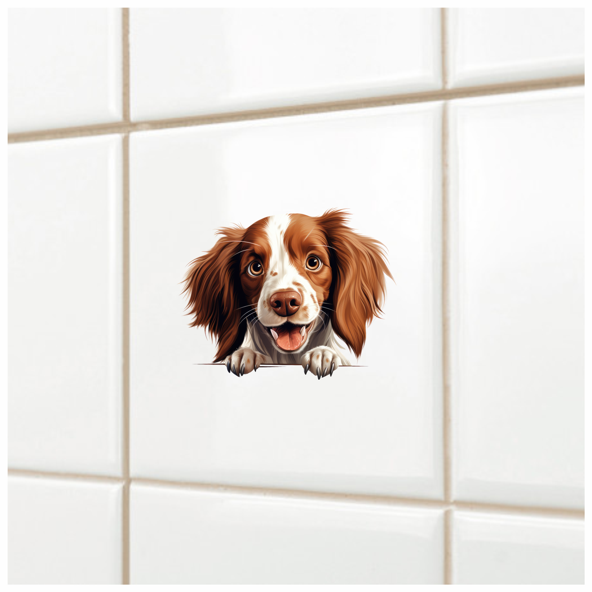Brown White Dog Spaniel Happy Face Vinyl Sticker Decal