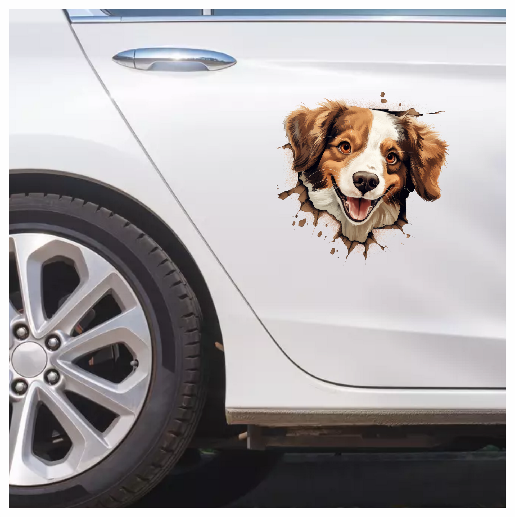 Brown White Dog Spaniel Smiling Vinyl Sticker Decal