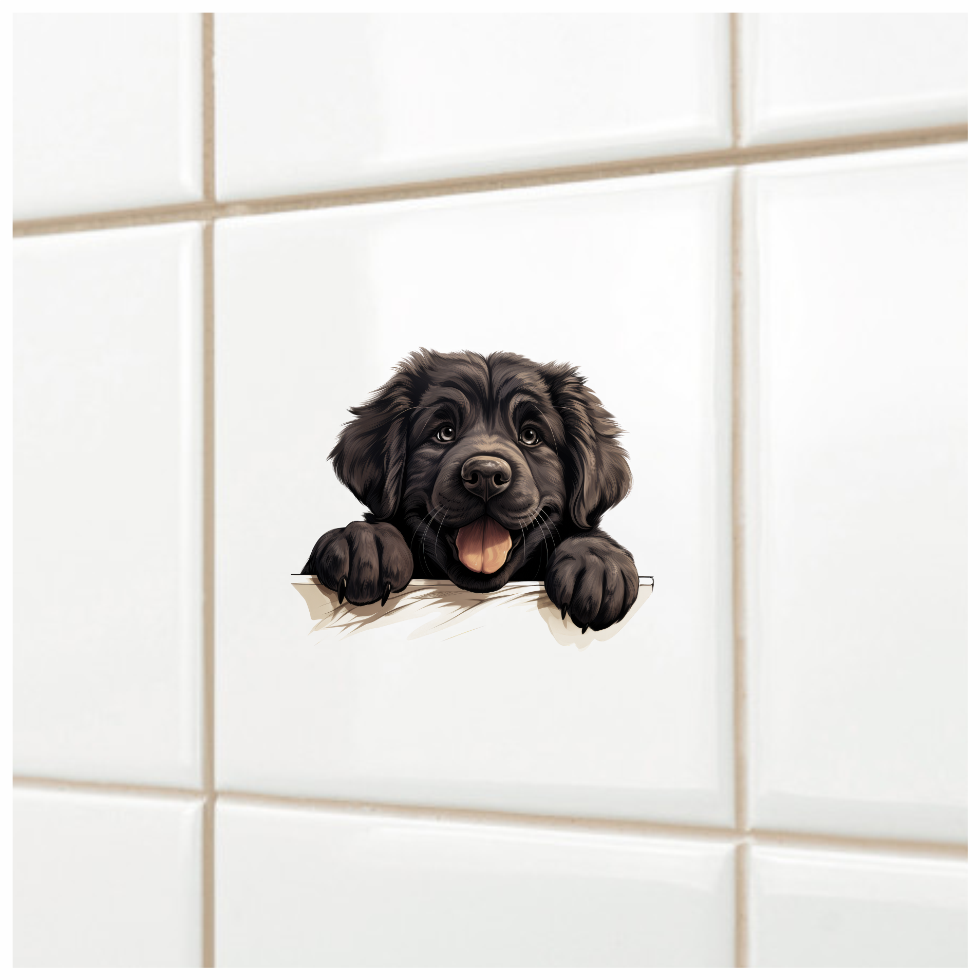 Black Dog Puppy Newfoundland Happy Vinyl Sticker Decal