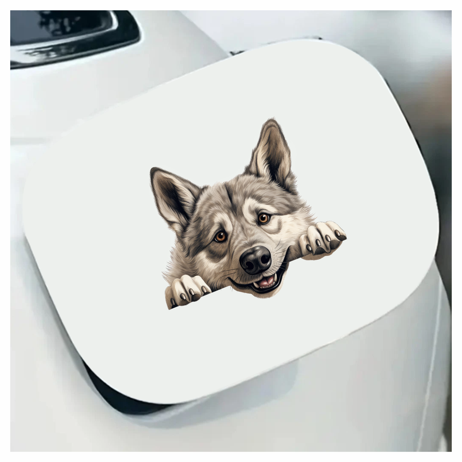 Grey Dog Husky Smiling Paws Vinyl Sticker Decal