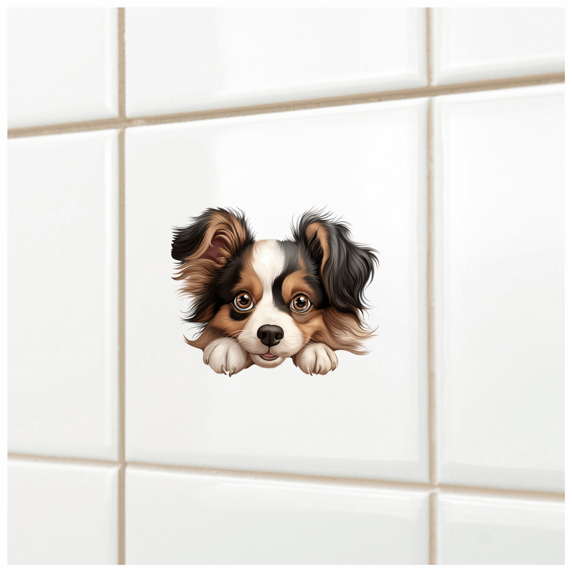 Brown White Black Dog Papillon Vinyl Sticker Decal