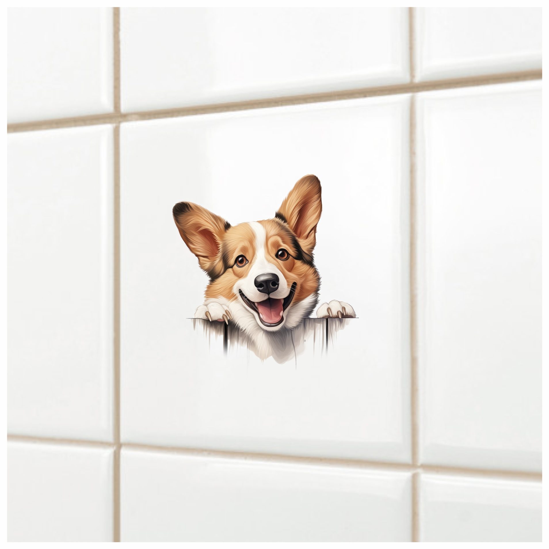Brown White Corgi Dog Smiling Vinyl Sticker Decal