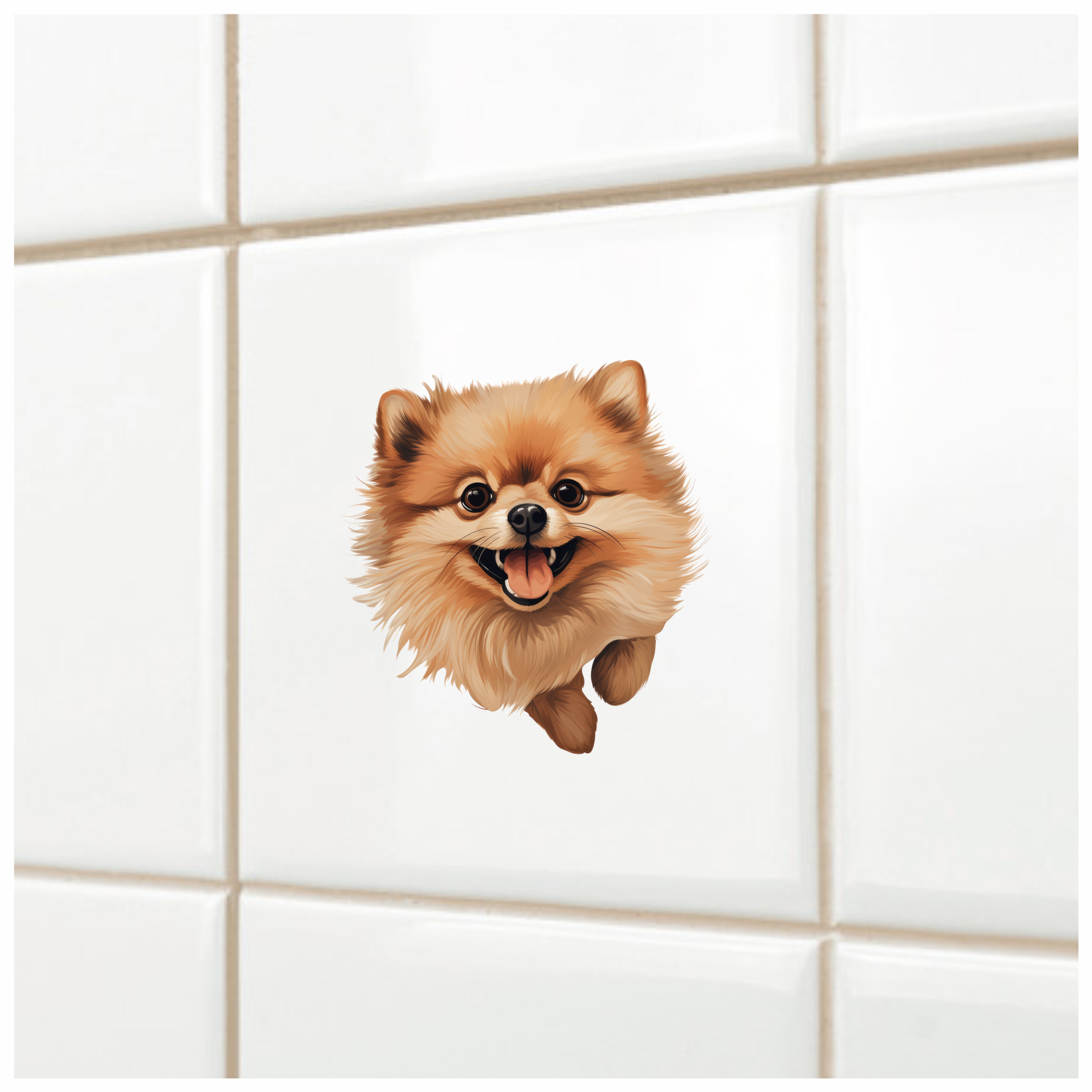 Brown Fluffy Pomeranian Dog Happy Vinyl Sticker Decal