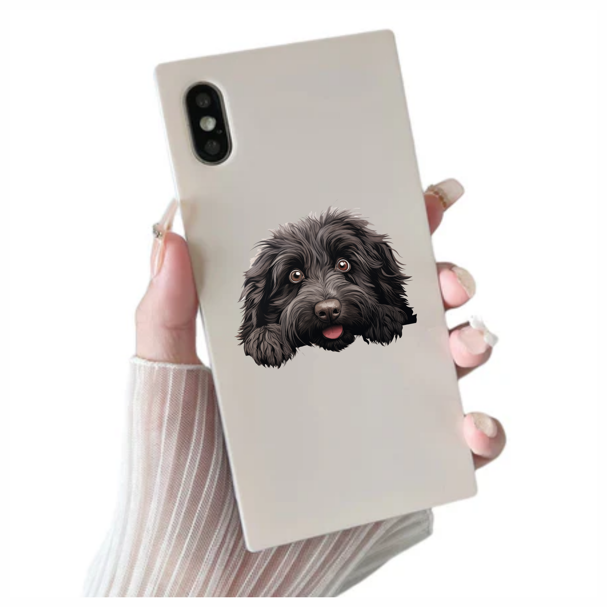 Black Dog Fluffy Puppy Face Vinyl Sticker Decal