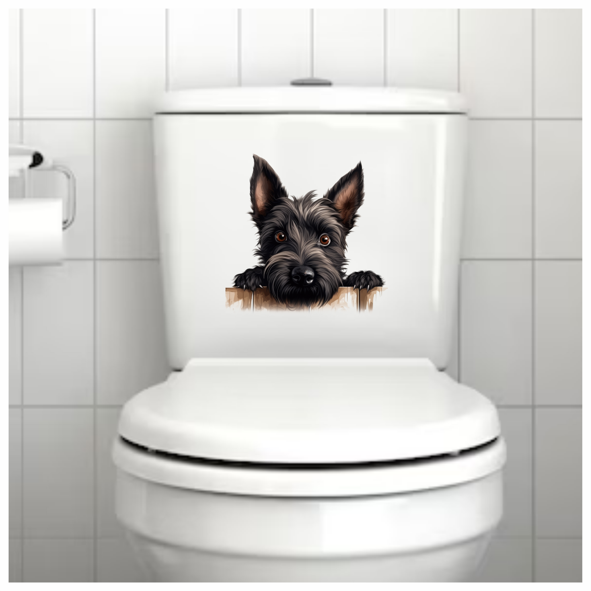 Black Dog Terrier Fence Looking Vinyl Sticker Decal